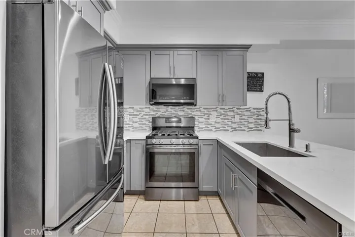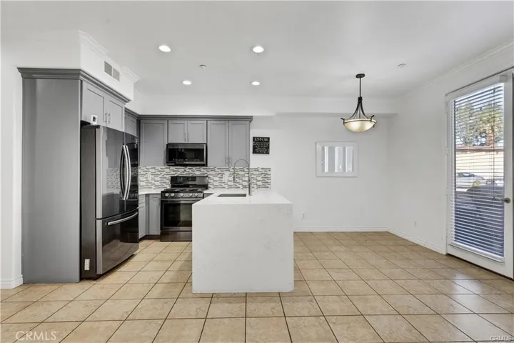 Tastefully remodeled, two-level townhome in gated community. Built in 2007, this remastered home boasts an open floor plan, 3 large bedrooms, 2.5 baths, 2-car attached garage. As you enter through the front door, you will encounter the living room with a cozy fireplace. New kitchen has quartz counter tops, elegant cabinetry with mosaic backsplash, and breakfast counter. Double french doors in dining room invite you to the front porch, perfect for entertaining. On the second floor, you are greeted with a spacious loft that can be a play, work, relaxation space or temporary guest quarters. Large master bedroom has walk-in closet with built-in organizers. Master bath has contemporary mosaic designs, dual-sink, a standing shower and separate tub. Second and third bedrooms are also large, with sliding glass mirror doors. Wood floors, classic baseboards, new electrical switches and much more. Neutral and inviting. Lease includes refrigerator, washer and dryer. Urban lifestyle with a small town feeling, the home is only minutes from Downtown Azusa, and borders the City of Covina. Also adjacent to schools, freeways, places of worship, bus stops, and shops. Come home to our your own oasis.