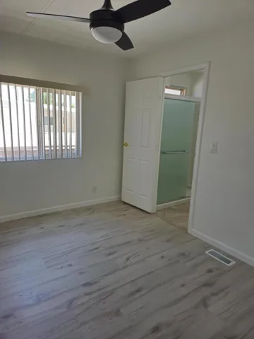 Beautiful golf course home with recent updates. Renewed and refreshed with kitchen counters, cabinets, faucets and sink.flooring, lighting, ceiling fans, bathroom sinks and vanity. Newly painted inside and out. Oversized lot with 2 sheds and 2-car garage. Air conditioner has been routinely maintained.Perfect for full or parttime living.Tri-Palm Estates is a 55+ community that offers owners unlimited golf, pools , tennis, pickle ball, bingo, music, organized activities, clubhouse, restaurant. Conveniently located near shopping, medical , restaurants. Come see this wonderful house!