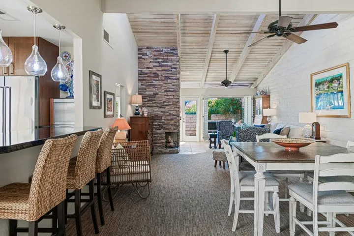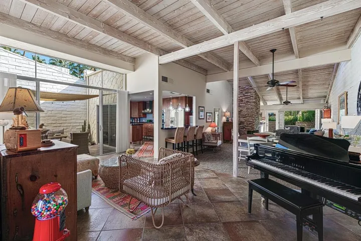 Exceptional Value in South Palm Springs!This is your chance to own a beautifully unique home in one of the desert’s most desirable communities–now at a newly reduced price.Bathed in warm desert light and surrounded by breathtaking mountain views, this spacious 3-bedroom, 2-bathroom condo offers 2,054 sq ft of inviting living space that blends comfort, charm, and opportunity. Whether you’re captivated by its original Spanish-style character or envision your own modern touches, this home is a rare find at this price point.Top 3 Reasons to Fall in Love:Architectural Warmth & CharacterRustic 12-inch adobe walls, broad beamed ceilings, and whitewashed shiplap combine to create a timeless, Spanish-contemporary vibe throughout the home.Private Outdoor EscapeStep outside to a lush, wraparound patio featuring citrus trees, flowering desert plants, and mature landscaping–an oasis of calm with mountain views and the songs of native birds.Vibrant, Updated CommunitySet within a secure, guard-gated neighborhood that’s recently undergone a multi-million-dollar infrastructure update–newly paved streets, enhanced lighting, and refreshed landscaping included.Inside, double glass doors open to soaring 14-foot ceilings and a sunlit open layout that seamlessly connects living, dining, and kitchen spaces–perfect for everyday living or entertaining. Enjoy easy indoor-outdoor flow with both an interior courtyard and a private walled patio, ideal for morning coffee or sunset dinners.Additional Perks: Leased water softener system Generous storage throughout Access to 3 community pools & spas, tennis courts, and BBQ areasAll just minutes from local favorites like L’Horizon, Koffi, and Smoketree Plaza.Whether you’re searching for a full-time residence, seasonal escape, or investment property–this home offers unmatched value and endless potential. Don’t miss your chance to own a slice of the Palm Springs lifestyle at a new, more affordable price.