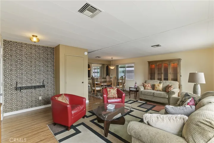 Welcome to this charming 2-bedroom, 2-bath manufactured home in the age-qualified Royal Palms community, perfectly situated among swaying palm trees near Palm Springs and the San Jacinto Mountains. Offering 1,440 sq. ft. of comfortable living, this home comes fully furnished, making it move-in ready. Enjoy the convenience of a laundry room, a relaxing back patio, and a covered carport.