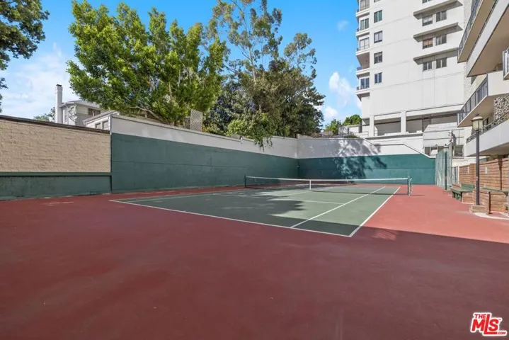 Welcome to The Wilshire Marquis, a full service luxury high rise ideally situated along the prestigious Wilshire Corridor in the heart of Westwood. This beautifully updated eighth floor condo offers two spacious bedrooms and two full bathrooms with a smartly designed layout perfect for professionals, roommates, or anyone seeking upscale living minutes from UCLA, Westwood Village, Century City, Beverly Hills, and the 405 Freeway. The formal double door entry opens to a large foyer and bright open concept living and dining area with sweeping views of Century City high rises, mirrored accent walls that expand the sense of space and light, and a built in wet bar with open glass cabinetry for elegant entertaining. The remodeled kitchen features granite countertops, stainless steel appliances, custom cabinetry, and a seamless flow into the living space. A full length private balcony offers a peaceful outdoor retreat with dramatic city views. Both bedrooms are generously sized and feature open views of Century City. The primary suite includes a walk in closet and an updated en suite bathroom with granite counters and custom cabinetry, while the second bathroom offers matching finishes and a tub shower combination. The second bedroom is nearly equal in size to the primary, adding flexibility for shared living or home office use. Additional features include newer wood look laminate flooring throughout, central air and heat, in unit stackable washer and dryer, and a prime location just steps from the elevator lobby for added convenience. The Wilshire Marquis offers resort style amenities including an Olympic length heated lap pool, spa, sundeck, fully equipped fitness center with sauna and locker rooms, three tennis courts including two rooftop courts with panoramic views, barbecue and garden patio areas for outdoor dining, a multipurpose recreation room, and a beautifully attended lobby with twenty four hour concierge and security. Residents also enjoy ample guest parking in a secure multilevel garage and two unassigned gated parking spaces included with the lease. EV charging stations are available on site, and the building is located within the highly sought after Fairburn Elementary School district. Professionally cleaned and move in ready, this residence presents a rare opportunity to lease a luxury condo in one of West Los Angeles’s most iconic full service buildings with unmatched access to top rated schools, world class dining and shopping, major commuter routes, and some of LA’s best cultural and academic destinations.