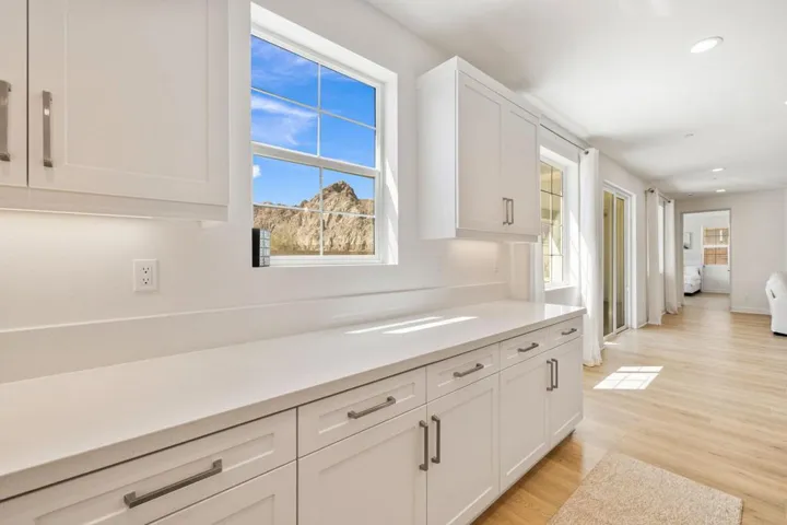 Better Than New! This never-lived-in home is perfectly situated in a premier South La Quinta location with stunning south-facing mountain views. Nestled at the foot of Coral Mountain, this desirable community of single-family homes is just minutes from PGA West Golf Course and a short drive to charming Old Town La Quinta. Step inside to an open-concept floor plan featuring a light and bright kitchen with white cabinetry, a spacious pantry, and a seamless flow into the great room — perfect for entertaining. Offering 4 generously sized bedrooms, including a private primary suite with a direct door to the backyard. The newly completed backyard is an entertainer’s dream, featuring a Pebble Tec pool & spa, putting green, gas firepit, plumbed BBQ, and a smart pool system for easy control. Additional highlights include upgraded flooring throughout, a tandem 3-car garage, low taxes, and low HOA fees. Don’t miss the opportunity to own this stunning South La Quinta retreat!