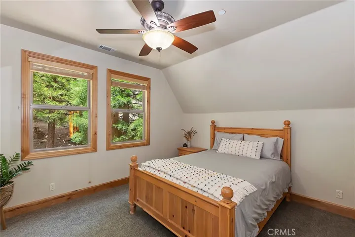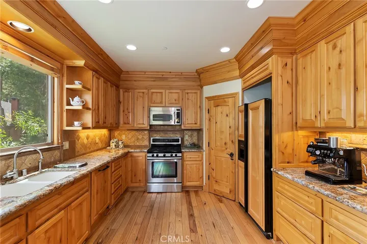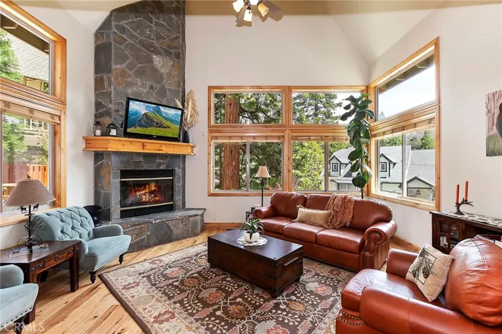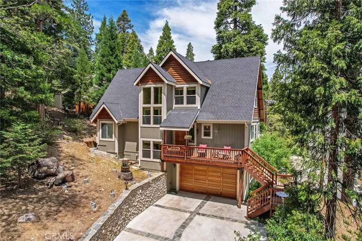 “Fore!” Watch out for this Golf Course Oriented Beauty! Located just across the street from the prestigious Lake Arrowhead Country Club Golf Course. A complete knock out this one is with Alder Cabinetry, Hickory Floors, Dual Level Windows, Attached and Direct Entry 2 Car Garage, Wine Cellar, and a Charming Patio for Summer Time in the Mountains. Enjoy single level living with an open floor plan an master suite on the main. The jaw dropping kitchen opens into the stunning dining & living spaces featuring a floor to ceiling fireplace as well as it is surrounded with natural light from towering windowscapes. The primary suite offers a walk-in closet, jetted tub, walk-in shower and direct access to the cool and quint patio. A balcony overlooks all of the livelihood and greets guests into one of three upstairs guestrooms with two additional baths, additional storage and built in office area. A bonus downstairs that could be anything you want, as well as landscaped grounds, adorable separate laundry room, and plenty of parking… even the driveway is fitted with stone accents and retaining wall surround. A total “Hole in One!”, a special home for the full time or the anytime with a killer mountain setting.