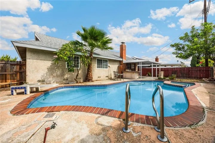 Great opportunity for a single story pool home in one of the best locations in La Habra! Entry leads into a large living/dining area which features a cozy fireplace and slider access to the covered patio and pool area. Kitchen includes another dining area that could be used as an office too and direct garage access. Extra large primary suite with 3 extra rooms that are spacious too! Great layout and with the sparkling pool and built in BBQ, this is a perfect home for entertaining! New interior paint throughout and hard wood flooring – the rest is ready for you to make your own! Close to all that La Habra, Brea and Fullerton have to offer; shopping, dining and entertainment! Welcome Home!!