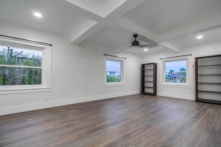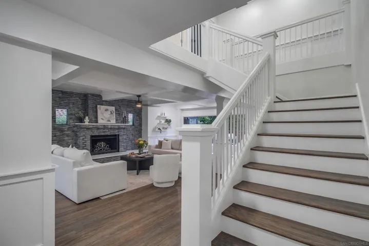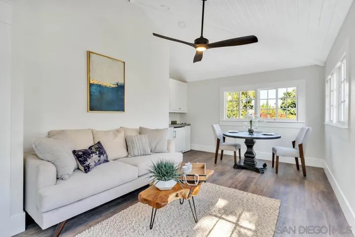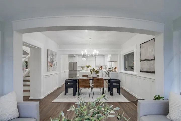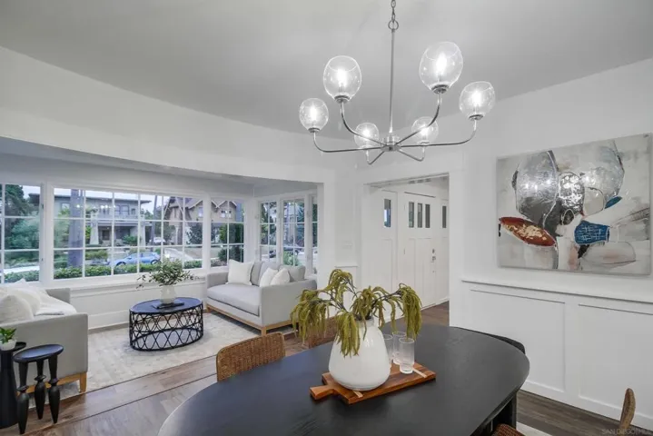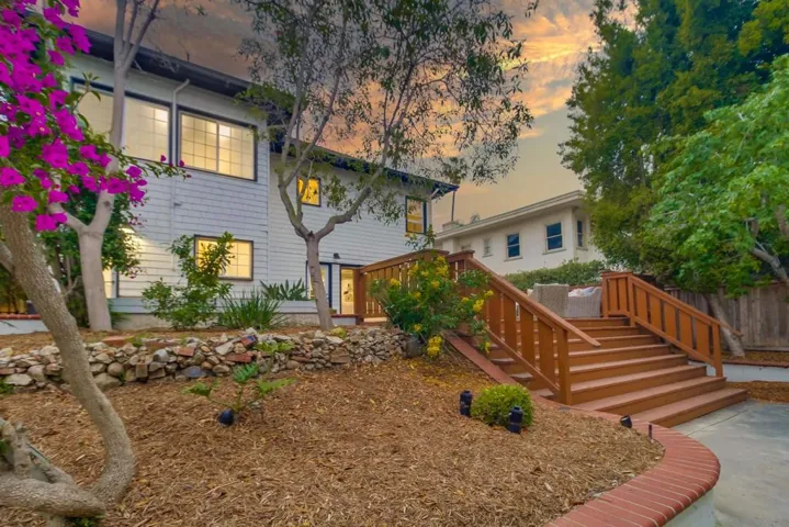 Timeless elegance offering a generous family compound on the iconic and tree-lined Sunset Blvd, located in the highly sought after North Mission Hills community. Stunning coffered ceilings, a showcase fireplace, and LaCantina doors create a seamless indoor and outdoor, open-concept dining and living atmosphere. Entertain loved ones in a chef’s kitchen, sip tea at the breakfast bar, and admire your plant loving, book reading sanctuary in the charming sunroom with picturesque bay windows looking out on views of the community! A canvas for outdoor enthusiasts, garden lovers, pet lovers, and children awaits in the expansive tree-shaded backyard that offers terraced landscaping and is fully fenced with additional parking! Upstairs, four spacious bedrooms await, including a primary retreat with a zen inspired soaking tub and walk-in shower room. The third floor flex room is the perfect den for crafts, a playroom, or additional storage. Perched above a rare detached 3 car garage is a 440 SF one bedroom, one bathroom ADU with a kitchenette and its own balcony and entry! Perfection awaits for multi-generational families in need of a separate second home or a buyer desiring a robust rental income – the options are unlimited! The magical and historic Mission Hills neighborhood is a central yet quaint metro San Diego location that offers good schools, award-winning eateries, treasured parks, stunning architecture, and local shops right outside your front door.