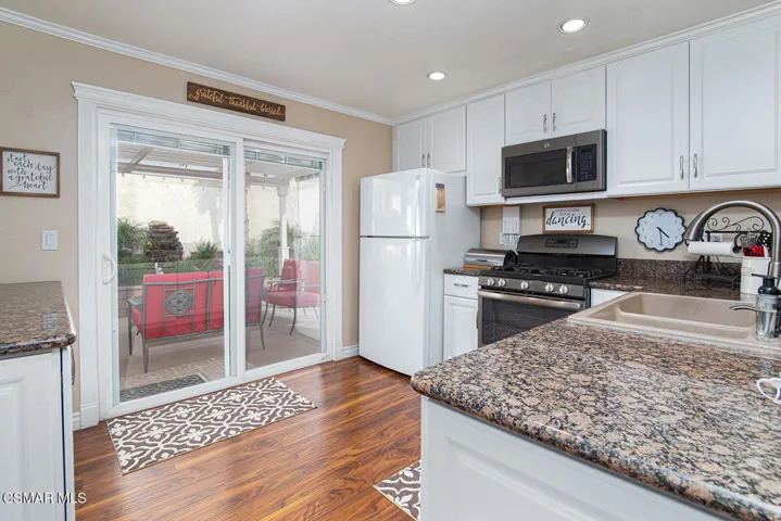 Welcome home to this beautifully upgraded home, in the sought-after Heather Glen Community. Home is located in a quiet, well-maintained neighborhood, with a beautiful park at the end of the street. There is plenty of parking space in the garage and the covered carport. Side or carport gates lead to a peaceful patios area & backyard -perfect for your morning coffee or a quiet read. Both have calming water fountains with plenty of space to entertain. The inside of the home is simply gorgeous- with Granite counters, custom tile in the bathrooms, Crown Moulding, Bullnose corners, smooth ceilings, recessed lighting, ceiling fans, Stainless Steel appliances, a 5 burner stove and so much more. The side and back yard are beautifully landscaped and so very inviting. Welcome home!