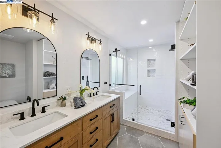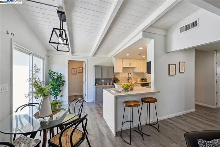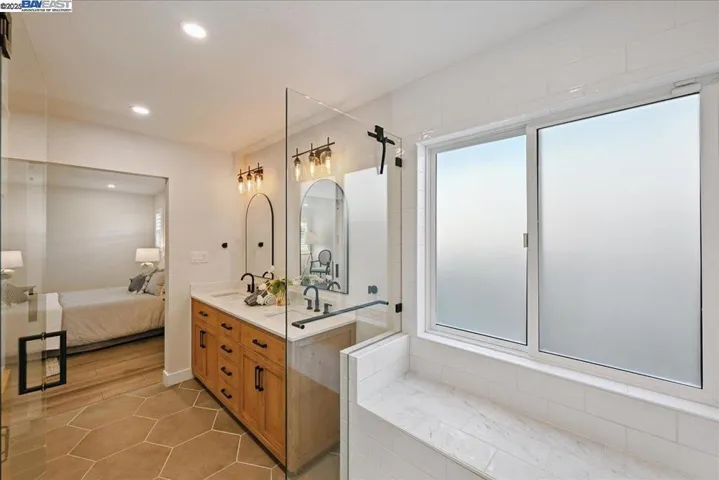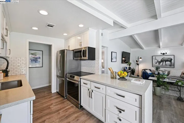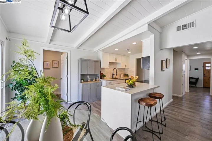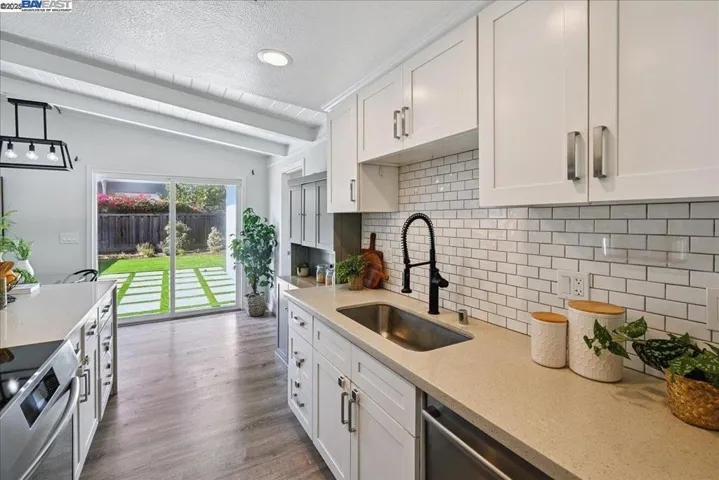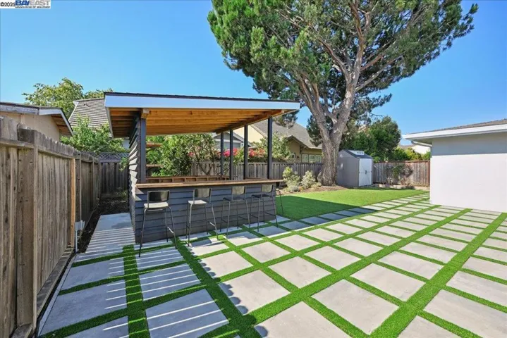 This GORGEOUS, EXPANDED, & REMODELED 3 bedroom, 2 bathroom home in the highly desirable SUNDALE neighborhood has so much to offer! Situated in the HEART of this FREMONT community, your future EAST FACING home has FANTASTIC natural lighting throughout & SO MANY BEAUTIFUL upgrades! From the GOURMET kitchen featuring QUARTZ counters, ELEGANT cabinets, brand new HIGH-END stainless steel appliances, & a LARGE farmhouse sink, to the ELEGANT laminate flooring throughout, to the SPACIOUS eat in area overlooking the patio; who can ask for anything more? The GRAND primary room with a RESORT STYLE bathroom featuring an OVERSIZED shower stall, dual vanities, & EXTRA-LARGE closet is a DREAM come true! And, having 2 additional rooms & COMMODIOUS bathroom makes this home PERFECT for a growing family or one that loves to host and have company! The backyard serves as your PRIVATE OASIS complete with a PLUSH patio, low maintenance turf, & a RESORT STYLE bar that is PERFECT for RELAXING & ENTERTAINING! Complete with modern solar panels, two TESLA power walls, built in TESLA charging station, & NEST thermostat, being close to the AWARD winning schools, shopping, restaurants, trails, parks, and ALL OF SILICON VALLEY; this CROWN JEWEL of the neighborhood is a 100% MUST SEE!!!