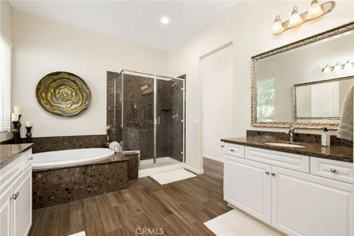 Desert Elegance Meets Modern Comfort in Sun City Shadow Hills Experience refined desert living in this meticulously maintained 2-bedroom with den/office, 2.5-bath, RETREAT floor plan home, ideally located within the vibrant 55+ active adult community of Sun City Shadow Hills. With 1,950 sq ft of thoughtfully designed space, this residence blends upscale design, practical functionality, and a relaxed resort-style lifestyle. Step inside to discover porcelain plank wood-look tile flooring throughout the main living areas, adding warmth and durability, complemented by high-end plush carpeting in both the primary and guest suites for added comfort. The home’s layout offers a spacious primary suite and guest room with en suite bath, a generously sized flex den or office (potential third bedroom), and a conveniently located powder room for guests. Unique design details include a designer sculpted pattern inset in the living room and ample storage throughout, including a well-appointed laundry room. The gourmet kitchen is a chef’s dream, featuring a KitchenAid stainless steel appliance package, solid hardwood cabinet doors, a custom oversized island with dramatic granite countertops, and a bespoke sidebar cabinet with stone surface, ideal for entertaining or as a stylish bar setup. Soft-close drawers and doors complete this elevated culinary space. Outdoors, enjoy the covered back patio with a built-in mister system, perfect for warm summer days. The spacious north facing back yard is private and low maintenance The 2-car + golf cart garage is equally impressive, boasting insulated doors, overhead storage, and a mini-split A/C system ideal for year-round comfort whether you’re working on projects or storing gear. This exceptional home combines quality upgrades with the comfort and convenience that make desert living truly extraordinary.