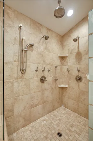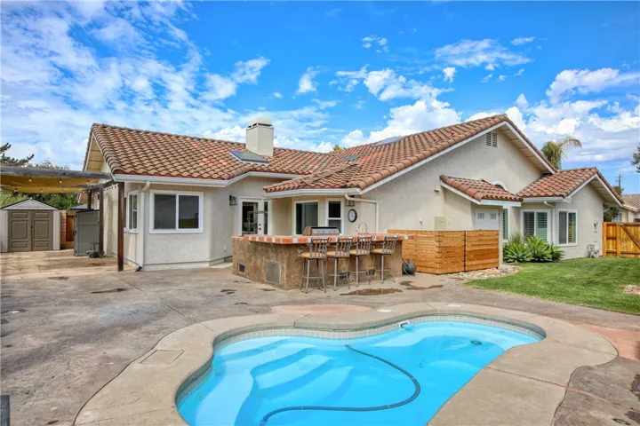 Step outside to your private backyard — complete with an outdoor kitchen featuring a built-in Santa Maria-style BBQ, a pool, and plenty of room for entertaining or relaxing in the sun. There’s even an outdoor shower for rinsing off after a swim or day at the lake.
