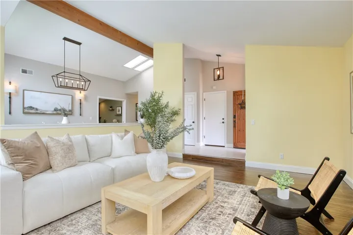 Inside you will feel the natural light pour in through multiple remote-controlled skylights, illuminating the open floor plan and highlighting the cool, stylish tile flooring—perfect for warm summer days. The fully remodeled kitchen is a chef’s dream, featuring high-end appliances, a 6-burner stove, soft-close cabinets and drawers, and a layout designed for both functionality and elegance.