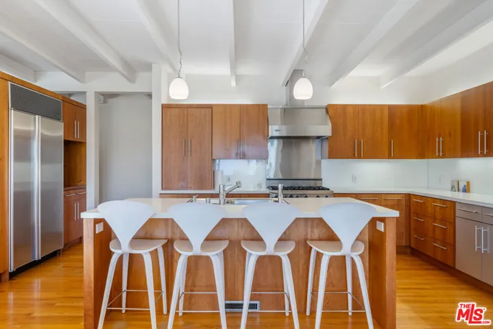 Perched above the Pacific in Malibu’s coveted Big Rock community, this extraordinary Mid-Century Modern home offers a rare fusion of sophistication and serenity. Owned by the same family for many years and painstakingly improved with meticulous care year after year, the residence embodies both timeless craftsmanship and modern refinement. Thoughtfully expanded with intentional square footage, it now includes a versatile flex space and dedicated office, complementing the home’s original architectural integrity. Designed with the essence of a Zen retreat, this ultra-private 4-bedroom, 3-bath gated masterpiece once featured in Sunset Magazine effortlessly balances organic textures with timeless contemporary elegance. Every detail has been carefully curated, from warm wood finishes and artisanal tile work to striking designer accents and top-tier materials that elevate the home’s aesthetic. Walls of glass invite natural light to cascade through open-concept living spaces, creating a seamless indoor-outdoor flow that enhances both intimacy and entertainment. Step outside to a resort-style oasis featuring a saltwater pool and spa, lush grassy yard, an incredible ocean view, fire pit lounge, and an alfresco kitchen with a fully equipped BBQ all framed by ocean breezes and tranquil greenery. Ascend to the private rooftop deck for panoramic sunrises and sunsets that stretch across the Pacific Ocean and Queen’s Necklace. Sustainable living is also woven into the home’s core, with full solar power, two Tesla Powerwalls, an EV charging station, and dual gated access to a circular driveway. Ideally located just minutes from Santa Monica, central Malibu, and some of California’s most iconic beaches and hiking trails, this is coastal living at its most refined.