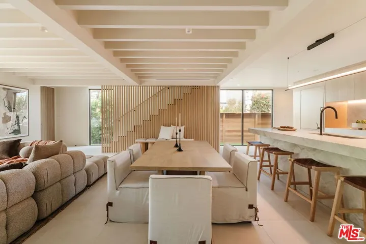Nestled in Venice’s charming walk streets, steps from lively Abbot Kinney and sunlit Pacific shores, this reimagined 2025 masterpiece spans over 3100 square feet, blending modern sophistication with warm organic elegance.Lush hedges embrace this serene sanctuary, featuring a 4-bedroom, 4-bathroom main house and a bright 1-bedroom, 1-bathroom guest unit perched above a spacious 2-car garage, seamlessly woven into nature.A majestic olive tree anchors a tranquil outdoor haven, perfect for relaxed gatherings and alfresco dining. Inside, the first floor opens with large-format tile radiating earthy luxury, where bronze anodized aluminum pocket sliders glide open to blend airy interiors with lush outdoor spaces, creating the quintessential Venice oasis. The chef’s kitchen, crafted for culinary artistry, showcases white oak cabinetry, Taj Mahal quartzite countertops, luxurious appliances and Wolf stone cooktop and oven.Upstairs, white oak floors flow through three bedrooms, each exuding warmth, while the primary suite’s Ocean Silver travertine shower evokes five-star hotel indulgence. This Venice gem, with its refined modernity and warm sophistication, redefines coastal elegance for intimate gatherings and grand celebrations.