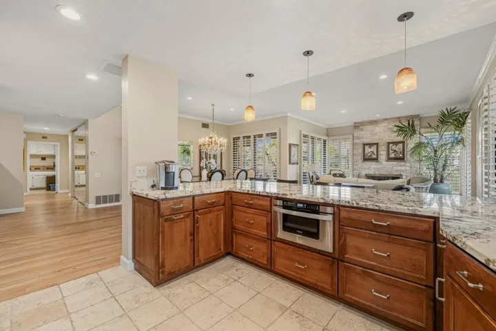 Beautiful mountain views. Steps from the community pool. 2 Bedrooms plus den/office/3rd bedroom. Bamboo hard wood flooring, upgraded light granite counters in large gourmet kitchen. JennAir double ovens and stove, Bosch dishwasher. Open floor plan, shutters, stone counters in bathrooms, showers and tubs, 2 ac units. Great interior location within the Springs Country Club.