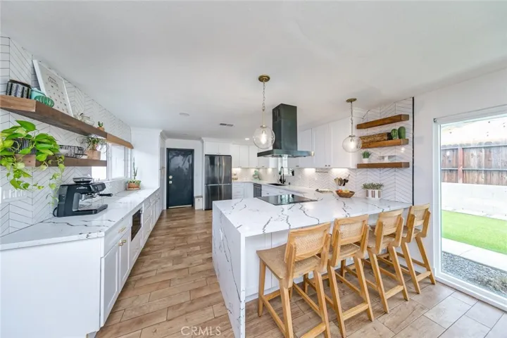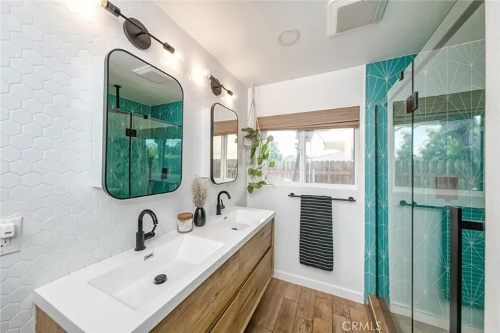 As you pull into the expansive driveway. You’ll notice the slick clean turf yard. As you walk to the front door and pass the electric car charger you will be greeted by a dutch door. Step inside to find a bright, open-concept living space where the renovated kitchen flows seamlessly into the dining and living areas—perfect for gatherings of any size. The kitchen boasts abundant storage and modern finishes, while both bathrooms have been stylishly updated. Throughout the home, durable faux wood tile flooring offers the beauty of hardwood with low-maintenance durability—ideal for busy families and pet owners. The private primary suite features a renovated bathroom and a walk-in closet, while two additional bedrooms provide flexibility for children, guests, or a home office. New windows and a whole house fan bring in natural light and energy efficiency.