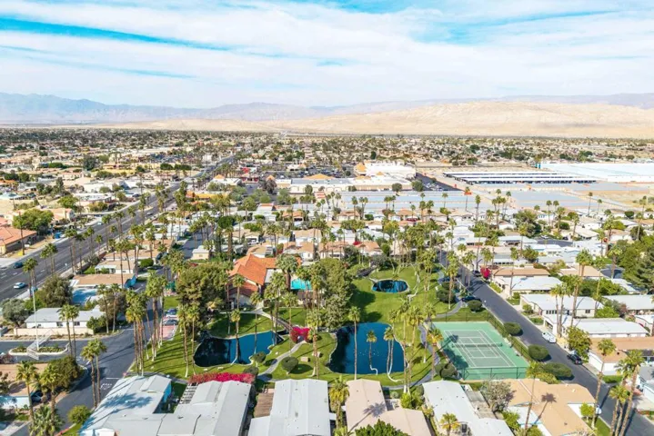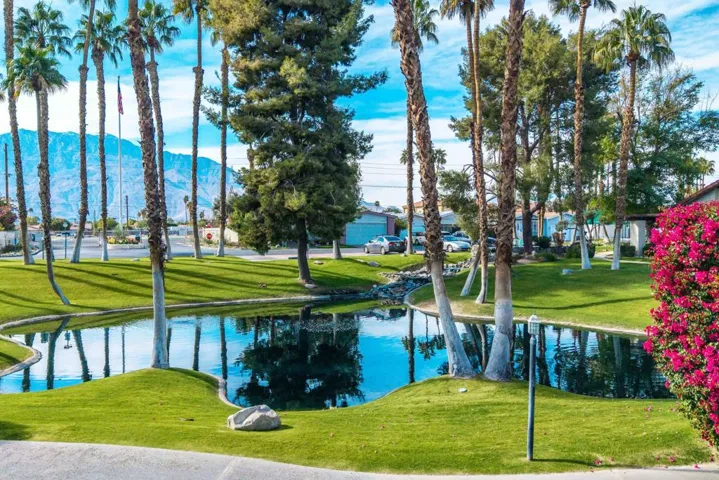 Beautiful 55+ Gated Community with panoramic views of surrounding mountains, One of the largest homes & located in the newest section at Desert Sands Mobile Home Park. Triple wide with 2 car garage. Spacious living room/den, family room. The dining room area & Kitchen have laminate flooring. Ceiling Fans thru-out. Light & bright with lots of windows… The master bedroom is wall-to wall glass windows looking out to the greens. Lush large side yard with lots of privacy your own little paradise in your backyard. French doors that lead to a covered patio back patio area or go thru garage, it’s perfect for entertaining. Master bath having dual sinks and an oversized shower. Great home at an affordable price. Desert Sands is a gated senior community, with pool, spa, sauna, clubhouse, fitness room, pool tables, card room, meticulous grounds and onsite management. Conveniently located only minutes from nearby shopping, dining, airport, casinos and more. Great community. Easy to show on short notice. Agents review private remarks.