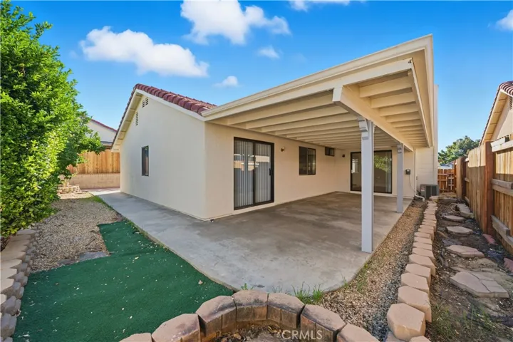 The open front yard offers a blank canvas for your landscaping vision. Step outside to enjoy a covered back patio perfect for relaxing or entertaining. The backyard is adorned with fruit trees and designed for low-maintenance living. The exterior has also been recently painted, enhancing curb appeal and giving the home a clean, modern look.