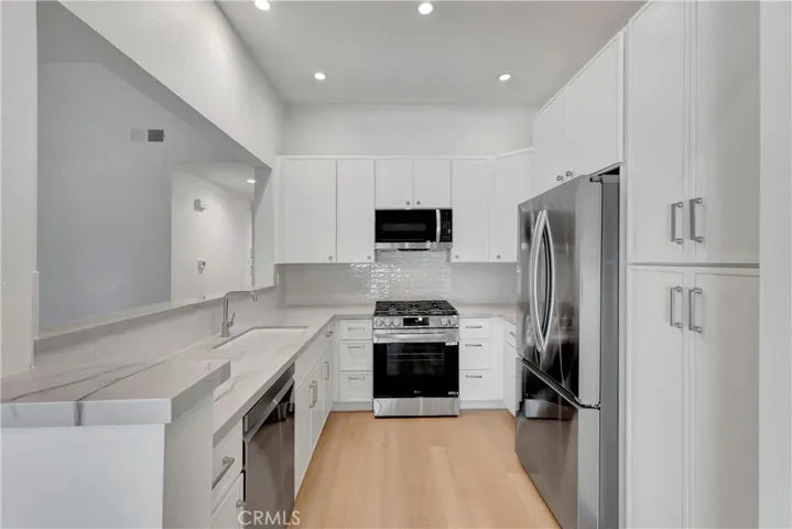 Welcome to Pacific Ranch! This newly remodeled upstairs corner unit offers 1,120 square feet of stylish living space with a serene setting surrounded by mature trees. Inside, you’ll find gorgeous hard-surface flooring throughout and an open floor plan that highlights a stunning remodeled kitchen with sleek quartz countertops, perfect for both everyday living and entertaining. The inviting living room features a cozy fireplace and access to a private balcony. The home offers two spacious bedrooms and two beautifully upgraded bathrooms, including a private primary en-suite with its own balcony. Set within the sought-after, guard-gated community of Pacific Ranch, residents enjoy resort-style amenities including a pool, spa, and lushly landscaped grounds. Ideally located just moments from downtown Huntington Beach, the pier, and award-winning schools, this home offers the ultimate combination of comfort, convenience, and coastal charm.