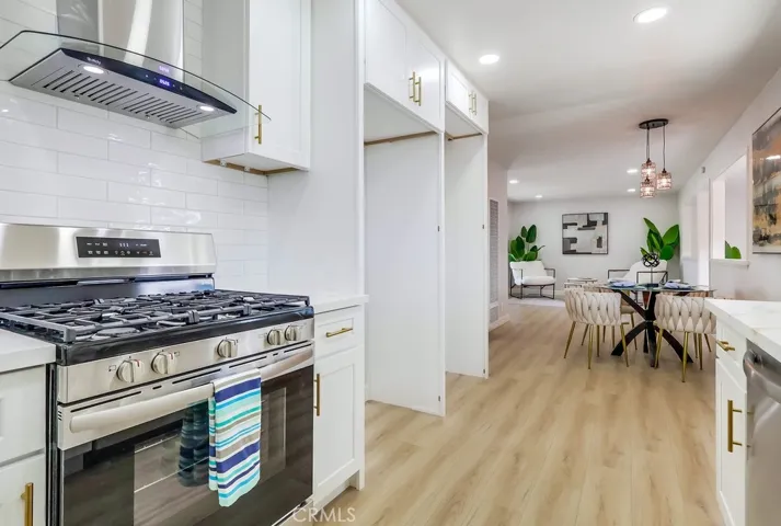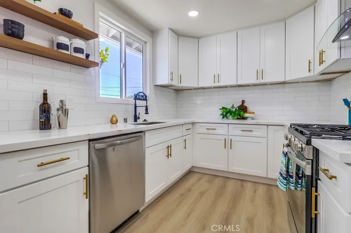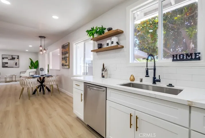 This beautifully remodeled home in a desirable area of the City of whittier seamlessly blends modern luxury with comfort and style. Featuring a bright and spacious floor plan, the home has been thoughtfully upgraded with luxurious finishes and stylish details throughout. Fresh paint and new laminate flooring with elegant baseboards throughout the entire property, creating a cohesive and contemporary feel. The kitchen features sleek quartz countertops, a chic subway tile backsplash, a farmhouse sink, custom cabinetry, and brand new stainless steel appliances. Cozy living room offers recessed lighting and elegant laminate flooring throughout, creating a warm and inviting ambiance. Fully renovated bathrooms with new vanity and walk-in shower. Step outside to a large backyard with plenty of space for entertaining, gardening and recreation. The detached garage offers potential for future ADU conversion. Convenient location, close to schools, shopping and restaurants. This property offers the perfect blend of indoor luxury and outdoor relaxation. It’s a must-see for anyone seeking a modern home with an entertainer’s touch!
