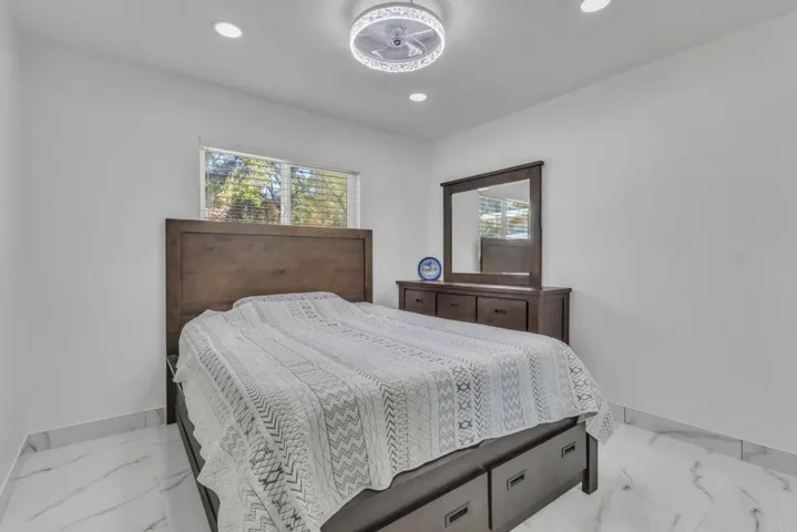 Welcome to 1545 Meadow Rd, El Cajon, CA 92021. Step inside to gorgeous tile flooring throughout and fresh interior paint, complemented by classic kitchen cabinets (installed in 2021) and a newer stove. The home features updated electrical wiring with LED lighting throughout, six LED chandeliers with fans and remote controls, an Energy Star whole-house fan, auto shut-off bathroom vent fans and heaters, newer windows, a newer AC system, a newer boiler, and updated attic insulation. Step outside to your beautiful backyard with a low-maintenance, gas-heated pool, solar lights with auto dusk-to-dawn sensors, four storage sheds, and established grape, lemon, and mandarin fruit trees—plus plenty of space to plant your own fruits and vegetables. The front yard is fully landscaped with artificial grass, a new retaining wall, and a paver walkway. There are also new fences with key-lock gates. The fully remodeled 2-car garage includes attic storage with pull-down stairs and a new insulated door with a quiet side-mount motor. The large backyard offers great potential for expansion or an ADU. This home is move-in ready and waiting for you to make it your own!