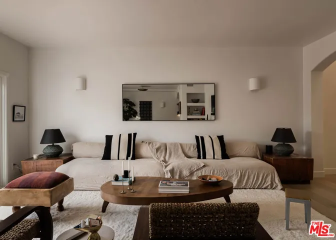 FULLY FURNISHED. Set behind a gated archway and surrounded by soaring palms, welcome to this townhome in the Mediterranean inspired Portico community. Thoughtfully updated throughout, the home offers spacious interiors, abundant natural light, and timeless finishes to create a warm and elevated retreat. The main level features a spacious open layout with a beautifully renovated gourmet kitchen, custom cabinetry, brand new appliances, and built-in storage. Graceful interior archways add architectural character, while the dining and living areas open through French doors to an oversized private patio ideal for entertaining, with multiple seating areas. Upstairs, two expansive primary suites offer full baths with custom cabinets and walk-in closets. One includes a cozy fireplace, views of the nearby mountains, and a private balcony. High ceilings and natural light throughout the home create a warm and inviting atmosphere, while a main-level powder room and a finished two-car garage with additional built-ins add convenience. Portico offers resort-style amenities including a pool, outdoor kitchen, and a spacious dining pavilion. Located just across the street from the Point Dume Nature Preserve and a short stroll to Westward Beach and Point Dume Village, this is Malibu living at its most comfortable and connected.