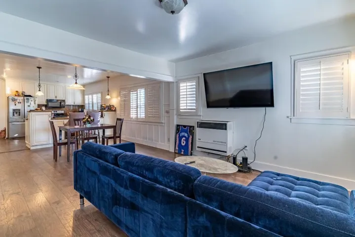 The front unit features 2 bedrooms and 1 bathroom, showcasing recent upgrades that blend comfort with modern appeal. The rear unit is a 1 bedroom, 1 bathroom, also tastefully updated and well-maintained. Both units enjoy the benefit of gated security and convenient rear access to an expansive parking area, providing plenty of space for multiple vehicles.