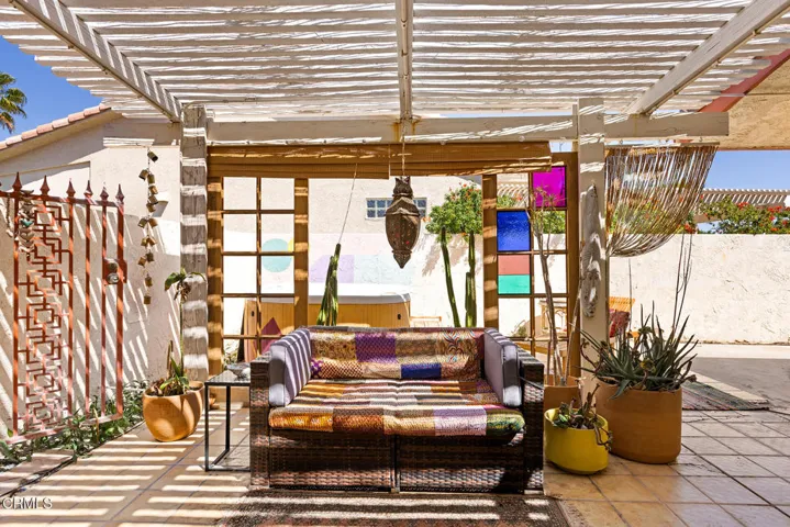 SHORT SALE, SUBJECT TO BANK APPROVAL. Don’t miss this fantastic opportunity to own a charming home in the desirable Mission Lakes Country Club. Resort living meets creative charm in this fabulous and fun 3-bedroom, 2-bath home. 64935 Leonard Court is a 2,136 square foot residence, brimming with character and thoughtful design. The open-concept living space features a custom tiled wood-burning fireplace, hand painted murals, newer thermal pane windows and plantation shutters. The kitchen boasts granite counters, a handcrafted mosaic backsplash, and a breakfast bar perfect for entertaining. The spacious primary suite offers an en-suite bath and double closets, while the guest bath showcases original tile and a teak shower floor. A bonus enclosed sunroom adds flexible space for a yoga studio, office, or game room. Situated on a large 10,000+ square foot corner lot, the backyard oasis has a charming in-ground pond. Additional highlights include a 2-car attached garage, and separate laundry room with ample storage. Just 20 minutes from Palm Springs, this vibrant golf community offers a saltwater pool, jacuzzis, tennis and pickleball courts, a full gym, pro-shop, restaurants, bar and more. This desert gem is ready and waiting to welcome you home!