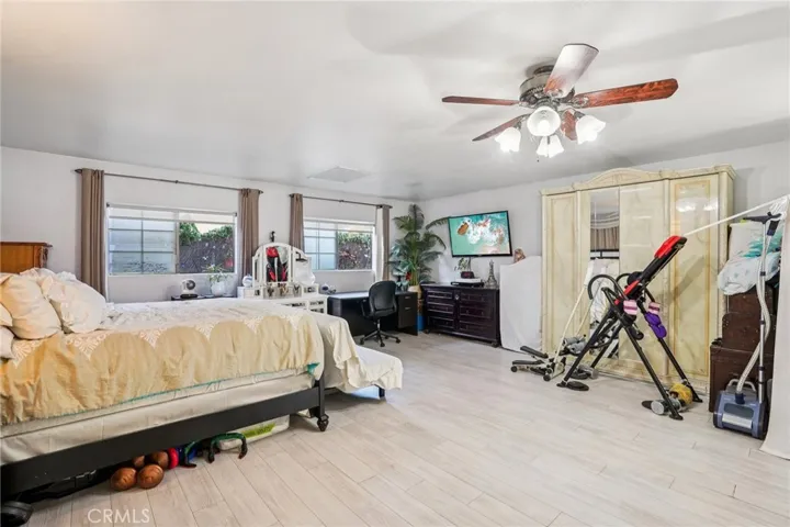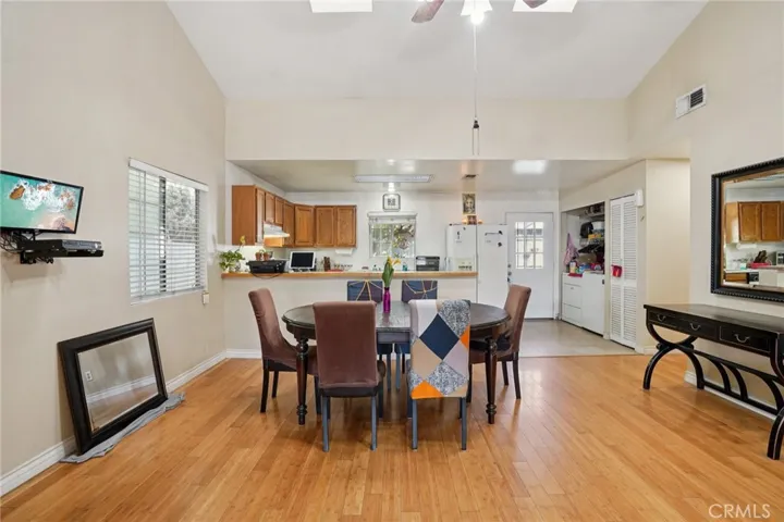 The main residence features 3 bedrooms and 2 bathrooms, with recent upgrades designed for comfort and peace of mind. Gorgeous bamboo flooring runs throughout, while soaring ceilings with dual skylights fill the open-concept living space with natural light. The layout is inviting and flexible, ready to complement your unique lifestyle. Additional highlights include an attached two-car garage, plus upgraded systems including a newer water heaters, main water line, and electrical panel. At the front, a sleek electric gate leads to a driveway with parking for two vehicles.