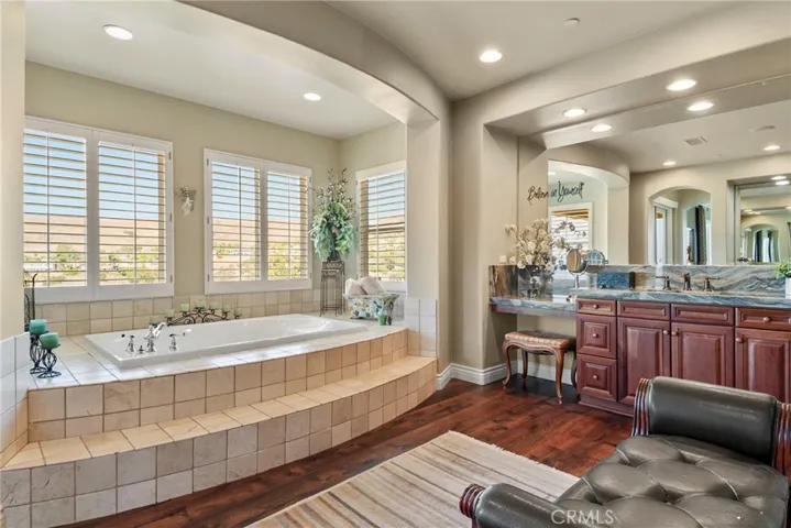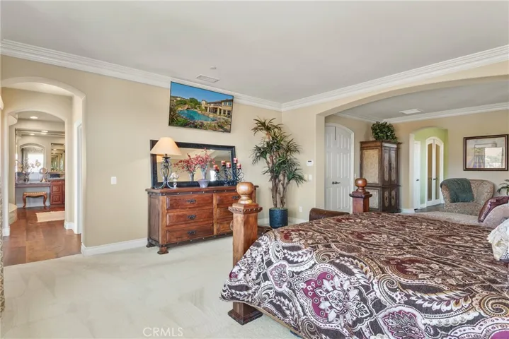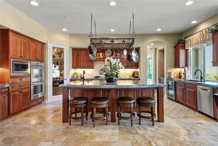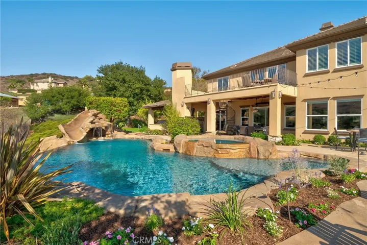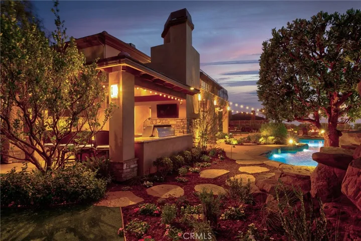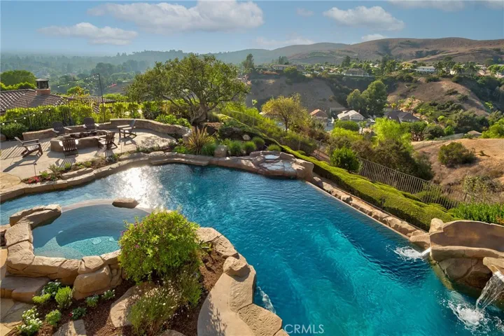 Welcome to this luxury estate in the highly sought after Mt. San Antonio neighborhood of Yorba Linda, situated on private streets with approved plans for a gated entrance to ensure even more privacy and security. Available for the first time on the market, this Plan 5 former model home is the largest floorplan offered & sits on one of the best lots in the community, a 1.06-acre private cul-de-sac property with ADU and RV potential, zoned for horses, & surrounded by a beautiful neighborhood of horse trails, hiking, & biking paths that back up to Chino Hills National Forest. The home spans 5,734 sq ft & offers 5 spacious en-suite bedrooms and 6 baths. Inside, you’ll find beautiful flooring throughout & professional designer finishes. The double door entry with custom beveled glass opens to an entertainer’s dream floor plan with 2 staircases & multiple living & entertaining spaces. The chef’s kitchen boasts a large island with seating and a prep sink, top of the line appliances including Sub Zero, Thermador, Bosch, and U-line, plus a walk-in pantry. The home also features a custom full bar with seating for six, a leathered quartzite bar top, wine & beverage refrigerator, Scotsman cocktail ice maker, cigar humidor, & a copper sink, with La Cantina bi-fold doors opening to the expansive patio. Additional highlights include a 4-car garage with epoxy floors, an upstairs bonus room with a large deck and fireplace, a hidden A/V room under the stairs, & a fully integrated Control4 whole-house automation system managing lights, HVAC, music, TVs, alarm, cameras, pool equipment, & Lutron window shades. Speakers throughout the home, garage, patios, BBQ area, putting green, and pool areas ensure seamless indoor-outdoor living. The backyard is a private resort like retreat, complete with an infinity edge rock pool featuring a water slide, grotto with jets, waterfalls, water features, & spa, as well as two lava rock firepits, 5 fireplaces total throughout the property & endless spaces to gather & entertain. Outdoor amenities include a kitchen and BBQ area with Viking appliances, a 2 tap kegerator, a 6-hole putting green with 2 sand traps & a chipping green, mature oak trees, fruit trees (lemon, orange, tangelo, lime, peach, plum and avocados), plus two garden boxes ready for spring planting. Stunning Catalina, Disneyland fireworks, & sunset views. With beautiful curb appeal, this home embodies luxury, privacy, and lifestyle. This is truly a dream property and a rare find.