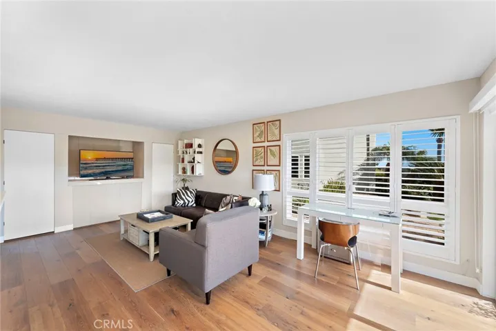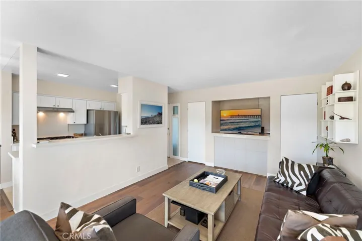Perched above the renowned Montage resort, this beautifully remodeled one-bedroom, one-bathroom condominium residence with peek ocean view offers the perfect blend of coastal elegance and modern design. Step inside to discover wood and travertine flooring with a thoughtfully designed open-concept layout that seamlessly connects indoor and outdoor living. The stylish kitchen features crisp white cabinetry, gleaming quartz countertops, and stainless steel appliances. The dining nook is complemented by a built-in buffet that matches the kitchen cabinetry for added convenience. The spacious living room opens to a private patio, where you can relax and take in the serene ocean view. The bathroom has been tastefully updated with travertine, a walk-in shower, white cabinetry, and matching quartz counters. The generous bedroom includes a peek-a-boo ocean view and custom California Closet built-ins, while an additional hall closet also features upgraded California Closet organization. Just a short stroll away, you’ll find Lang Park, Treasure Island Park and Beach, Aliso Beach, and the world-class amenities of the Montage Resort. Whether as a serene full-time residence or a luxurious coastal escape, this coastal retreat captures the essence of Laguna Beach living.