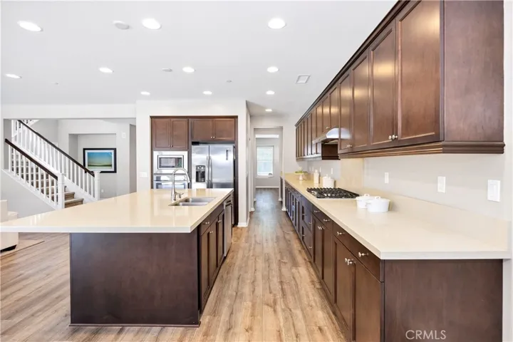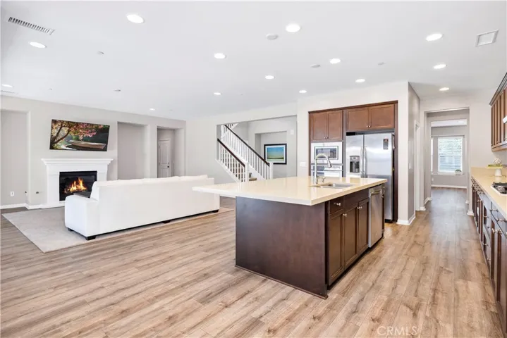 Gorgeous Heritage Lake Home! Built in 2017, this massive 3,408 Sq. Ft. home is virtually untouched, only lived in part-time and feels almost brand new! The layout of this home is perfect for multi-generational living. Inside you’ll find high ceilings, luxury vinyl flooring, and a spacious family room with a beautiful fireplace and white mantel. The chef’s kitchen features a massive island, stainless steel appliances, walk-in pantry, and butler’s area. A dramatic 3-panel sliding glass door opens to the California room, creating seamless indoor-outdoor living. The backyard is low-maintenance with a covered patio, vegetable garden, and raised planter beds. Downstairs includes a private guest suite with en-suite bathroom. Upstairs offers a loft with mountain views, two spacious bedrooms, and a Master suite with an oversized walk-in closet, dual vanities, soaking tub, and separate shower. Additional highlights include under-stair storage and a 3-car tandem garage. This property is located in the Master Planned Community of Heritage Lake. Amenities of Heritage Lake include: several large Parks and Sport Fields that have Playgrounds, Baseball, Basketball, Soccer, Pickleball and Tennis Courts. Heritage Lake has a 25-Acre lake exclusively for residents, featuring catch-and-release fishing, paddleboat rentals, and scenic walking trails that wind around the lake and throughout the community. Heritage Lake offers a clubhouse that hosts a variety of events and activities for residents throughout the year. There are two community pools and a splash pad designed for young children. This home is conveniently located within walking distance to Mesa View Elementary and Ethan A. Chase Middle School. Heritage Lake is just minutes from the 215 Freeway, as well as nearby restaurants, shopping centers, and all the wonderful amenities Menifee has to offer. Surrounded by stunning mountain views, Heritage Lake provides a serene and picturesque setting for residents to enjoy year-round!