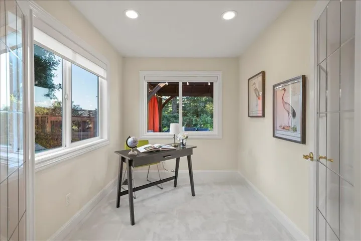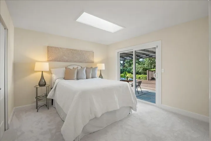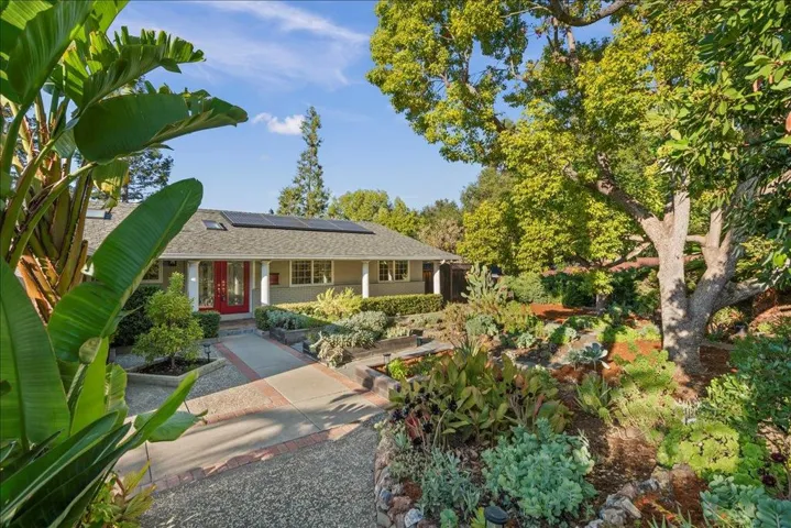 Welcome to this beautifully remodeled Belwood home with Valley & City Light views . Double custom etched glass door entry with a skylight. Spacious updated kitchen with a large center island, skylight, granite counter tops, stainless steel appliances, gas cook top, built-in wine refrigerator. Breakfast nook. Stone & hardwood floors. New carpeting in all bedrooms. Living & dining room combination with a decorative fireplace. Remodeled modern hall bathroom with stone & glass surfaces. 2nd full bathroom with a stall shower. Oversized primary bedroom with three closets & built-in’s, ceiling fan, sitting area, double sided gas fireplace. Primary bathroom with double sinks, granite counter tops and vanities, stall shower and jetted tub. Crown moulding, closets with built-ins, double pane windows and sliders. Inside laundry room with a wash basin. Recessed lights throughout. Double pane windows/sliders. Owned solar and Powerwall. New HVAC & ducts. Earthquake retrofit. New sewer line to street. Tankless water heater. Large backyard with decking, pergola, numerous fruit trees and valley views. Mature landscaping and succulents. Cozy front porch. Close to Belgatos Park & Santa Rosa Trail. Home belongs to Bellwood Pool Association. Noddin Elementary, Union Middle School, Leigh High School