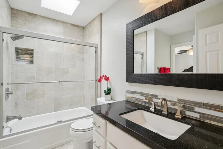 Contemporary Remodeled 3-Bedroom Home with Stunning Fairway Views! Welcome to your dream desert retreat! This stunning contemporary 3-bedroom, 2-bath home, featuring the highly desirable 300 Plan with an expansive open living concept ideal for both relaxing and entertaining. Step into the lush, private front courtyard, a peaceful sanctuary that sets the tone for the rest of this stunning property. Inside, the living area is enhanced by vaulted wood beam ceilings, recessed lighting, and a striking stack stone fireplace that creates a warm, stylish focal point. The kitchen is a chef’s dream, boasting custom cabinetry, granite slab countertops, and sleek stainless-steel appliances. Throughout the home, you’ll find upgraded baseboards, ceiling fans, and thoughtful touches that elevate the space. The primary suite includes a spa-like bathroom with an oversized shower and a skylight that floods the space with natural light. Guest bathrooms are equally well-appointed with granite countertops, and the guest bedrooms also enjoy natural illumination thanks to additional skylights. A unique highlight of this home is the converted atrium, now a bright den or office space featuring skylights — perfect for remote work or a quiet reading nook. The attached garage offers direct access, ensuring both convenience and security. And let’s not forget the breathtaking double fairway views – the perfect backdrop for morning coffee or evening cocktails on the patio. This move-in ready home combines contemporary modern design with comfort and functionality in one of the area’s most desirable communities. A must-see for buyers seeking style, quality, and prime location!