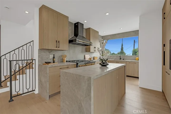 Downtown view. Location, Location, Location! Stunningly remodeled corner-lot home on Kenneth Road. The spacious living room, featuring a massive stone fireplace, seamlessly opens to the dining area, breakfast nook, and kitchen—highlighted by a beautiful enclosed glass wine display. This home boasts 4 bedrooms, each with its own private bathroom, plus a total of 5 bathrooms. The remodeled pool adds a luxurious touch. The lower-level family room opens directly to the pool area, making it an ideal space for a pool table, bar, and entertaining guests. No expense was spared in the upgrades: engineered hardwood floors, exquisite Italian tiles from Spain, custom European doors, designer kitchen cabinetry, Hansgrohe faucets, a new roof, all-new plumbing and electrical systems, new sewer lines, and three new HVAC units. Experience the perfect blend of elegance, comfort, and modern luxury in this exceptional home.