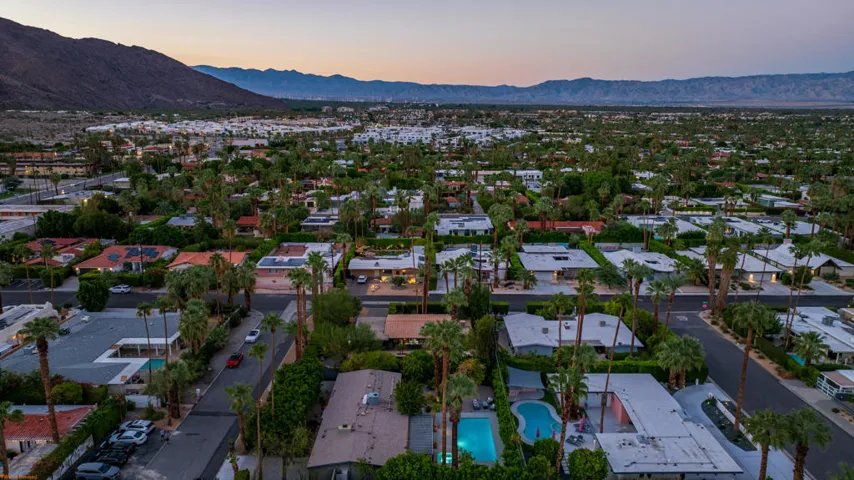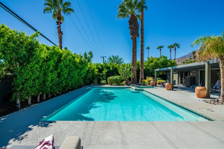 Tucked behind private gates and lush greenery in Tahquitz River Estates, this beautifully maintained 3-bedroom, 3-bathroom home offers nearly 2,000 square feet of seamless indoor/outdoor living. Sunlight fills the open floor plan, which features spacious living and dining areas, a well-equipped kitchen, and thoughtful updates that blend classic Palm Springs charm with modern finishes. Each bedroom is paired with a nearby bathroom, providing a private and practical layout for residents and guests. Step outside to your backyard oasis, where a large pool and spa create a resort-like retreat, surrounded by mature landscaping, multiple seating areas, and clear views of Mount San Jacinto. Designed for both relaxation and entertaining, the space combines serenity with private seclusion. Sitting on fee land (you own it) with no HOA, this home places you just minutes from the vibrant heart of Palm Springs, with its renowned restaurants, boutique shops, galleries, and entertainment at your doorstep. Ideal as a full-time residence, weekend getaway, or high-demand vacation rental. (As of September 18, 2025, Tahquitz River Estates is well below the 20% vacation rental cap, further enhancing its appeal.) Experience the ultimate Palm Springs lifestyle, combining comfort, style, and unmatched views in this private desert retreat.