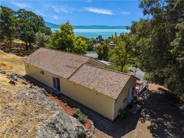 Nestled hilltop between incredible rock formations and shady oaks, sits this private custom built get away with 180 degree sweeping lake views. The ideal property for summer living, retirement, or an easy full time residence. Offering a spacious open layout with high ceilings, large picture windows, set up for entertaining all year long. Nice open kitchen with easy access to the dining area. Two bedrooms each on opposite ends of the home provide privacy. Full bath with soaker tub, and extra storage. The second bedroom offers an additional half bath. Spend your days relaxing on the covered wood deck, basking in sun rise to sunset. Or cozied up next to the fireplace while the seasons change. A well loved property looking for its new owners to enjoy it just as much.