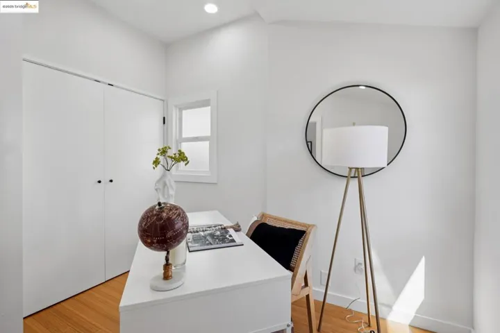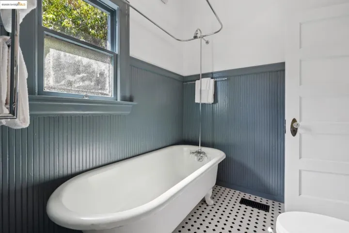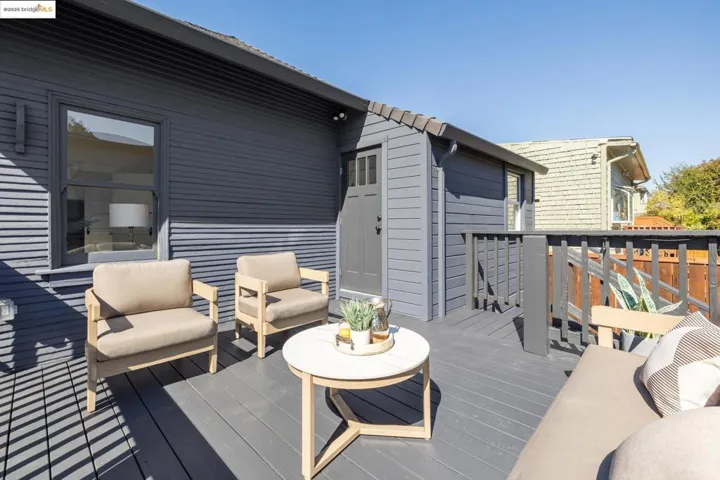 Old meets new in this 3-bedroom, 1-bath Craftsman bungalow, reimagined for modern living while preserving its 1910 charm. Behind the cheerful yellow door, a sunlit living room with bay windows, hardwood floors, and a coved ceiling flows to a formal dining room with built-in glass hutch, original tiled hearth w/ mantle, and mirror. The updated kitchen blends farmhouse character with beadboard wainscoting, granite counters, designer tile backsplash, open shelving, farmhouse sink, and stainless appliances anchored by a Wolf range. Two spacious bedrooms, one with private bath access, plus a smaller third bedroom/office, paired with a classic bath featuring a clawfoot tub, wainscoting, and new tile. Added comforts include a stacked washer/dryer, whole-house fan, and updated plumbing, heating, and electrical. Landscaped front yard, new paver driveway, one-car garage with car charger and workshop, and a private backyard deck with turf, citrus, and planter boxes complete this walkable Bushrod Park gem. Walk Score 90, Bike Score 100, and walking distance to BART. Flexible Tenancy in Common (TIC) ownership structure may qualify for subdivision opportunities under SB9 and/or SB 684 to unlock future value potential (Buyer to verify) or purchase both homes together. Must see.