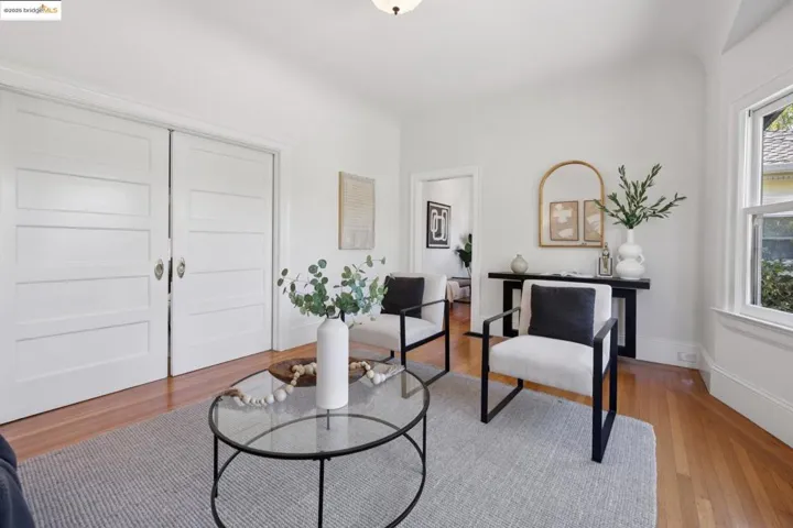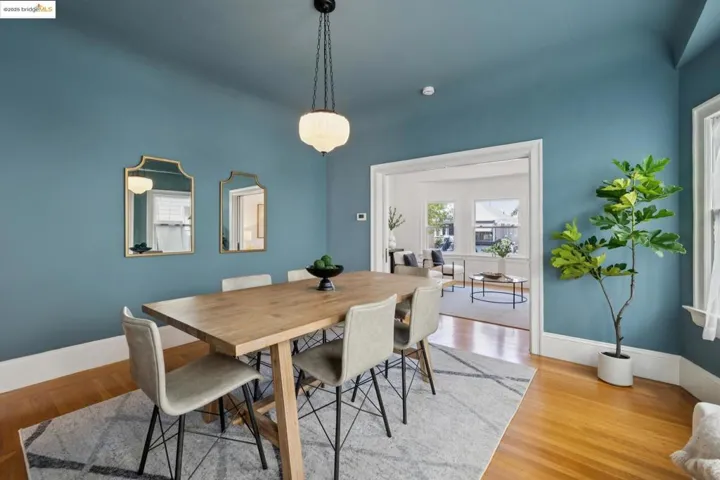 Fresh new price! Old meets new in this 3-bedroom, 1-bath Craftsman bungalow, reimagined for modern living while preserving its 1910 charm. Behind the cheerful yellow door, a sunlit living room with bay windows, hardwood floors, and a coved ceiling flows to a formal dining room with built-in glass hutch, original tiled hearth w/ mantle, and mirror. The updated kitchen blends farmhouse character with beadboard wainscoting, granite counters, designer tile backsplash, open shelving, farmhouse sink, and stainless steel appliances anchored by a Wolf range. Two spacious bedrooms, one with private bath access, plus a smaller third bedroom/office, paired with a classic bath featuring a clawfoot tub, wainscoting, and new tile. Added comforts include a stacked washer/dryer, whole-house fan, and updated plumbing, heating, and electrical. Landscaped front yard, new paver driveway, one-car garage with car charger and workshop, and a private backyard deck with turf, citrus, and planter boxes complete this walkable Bushrod Park gem. Walk Score 90, Bike Score 100, and walking distance to BART. Must see.