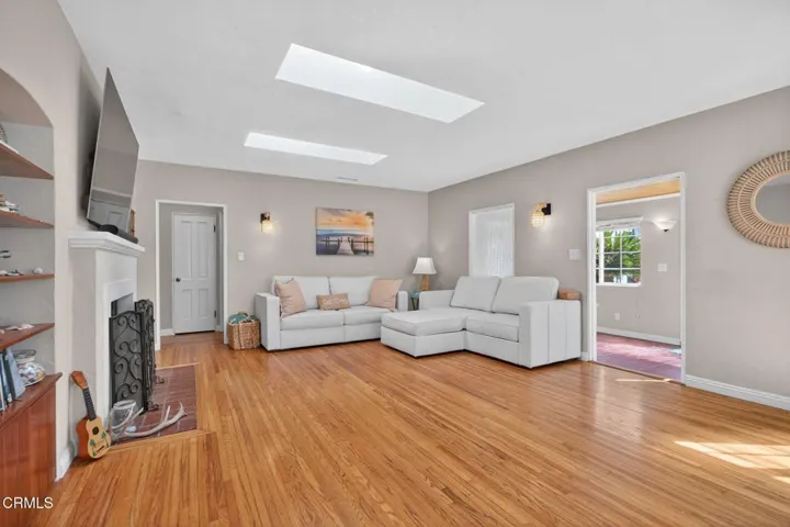 Coastal Charm Meets Modern Comfort in Midtown Ventura.Just one mile from the beach, this charming spacious three-bedroom, two-bathroom home is located in Ventura’s highly desirable mid-town neighborhood, close to shops, restaurants, and the 101 freeway. Offering 1,368 square feet of living space, the home blends vintage character with thoughtful modern updates.The inviting open living room features a cozy gas and wood-burning fireplace, complemented by real wood floors and two skylights for additional sunlight. The open concept continues with a dining room large enough for you and your guests. A vintage yet modern feel carries through the home, enhanced by central HVAC, a tankless water heater, newer attic insulation, updated ductwork, and dual paned windows with the added convenience of a separate indoor laundry room.Outdoors, the property is designed for both easy maintenance and entertaining. Artificial turf and manicured landscaping frame the front and back lawns, while a spacious deck offers the perfect space to gather with friends. A designated sand pit with an outdoor fireplace creates an inviting setting to enjoy cool coastal evenings. The finished shed in the backyard provides added flexibility, ideal as a workout space, office, or creative studio.Recently fumigated and well maintained, this home offers the best of Ventura living–classic charm, modern comfort, and a location that keeps you close to everything the beachside lifestyle has to offer.