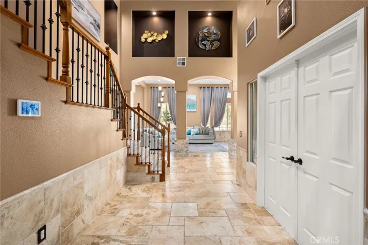 SPECTACULAR 4 ACRE Equestrian Mini-Estate POOL HOME in the Highly Desirable Mockingbird Canyon Community with Endless VIEWS of the Valley, City Lights & Surrounding Hills!! ATTENTION ALL OWNER-OPERATORS, DESERT ENTHUSIASTS and HORSE LOVERS…Plenty of Room for your Trucks, RVs, Boats, Trailers, Horses and More * * OVER $200K in Improvements * * Situated at the END of the CULDESAC and NO MELLO ROOS, NO HOA Fees & LOW LOW Taxes * * EXPANSIVE Floor-Plan offering 3919sqft w/4 LARGE Bedrooms, Bonus Room, Separate OFFICE and 4 Bathrooms * * This Model has a MAIN FLOOR Bedroom with it’s OWN Private Bathroom * * Beautifully REMODELED Chefs Quality Kitchen with GRANITE SLAB Counters & Back-Splash, French Antique White Cabinetry, STAINLESS STEEL Appliances, Breakfast Counter for the Kids & Walk-In Pantry * * Formal Living Room & Formal Dining Rooms with SOARING 25ft High Volume Cathedral Ceilings * * UPGRADED Throughout w/REMODELED Bathrooms & Kitchen, Travertine Flooring & Baseboards, DESIGNER Fixtures, Wrought Iron Staircase, Crown Molding, Custom Interior Paint, Recessed Lighting, Custom Front Entry Door, Raised Panel Doors, GATED ENTRY, Fountain, Solar Panels and MUCH MUCH MORE * * Backyard is PERFECT TO ENTERTAIN with Sparkling Saltwater In-Ground Pool (with Safety Fence), FULL-LENGTH Aluma-Wood Covered Patio w/Ceiling Fans, Fenced Yard with Lots of GRASS for the Kids to Play, Fire-Pit, Mature Palm Trees & OVER 35 Fruit Trees and PLENTY of ROOM for your Horses & Animals….This could be the PERFECT Lot for the Owner/Operator with an OVER-SIZED 3 Car Garage w/Outdoor Covered Parking, Multiple Tuff Sheds, Steel RV/Boat Covered Parking, 40ft Container and GATED Access with Room for your RV, Boat, Trailers, Trucks & More * * SPACIOUS Master Bedroom Suite w/Romantic Dual Sided Fireplace, Large Walk-In Closet & Separate Retreat – AND – Master Bathroom w/His & Her Sinks, Oval Garden Tub & Custom Tiled Walk-In Shower * * Great Floor-Plan with Large Bedrooms offers Everyone PLENTY of SPACE * * Situated on a PREMIUM 4 ACRE Lot with your own PRIVATE Gated Entry at the End of a Culdesac * * Close to Schools, Shopping, Restaurants/Dining & EZ Freeway Access * * LOW TAXES and NO HOA * * Terrific Home that will CHECK all of Your Boxes!!