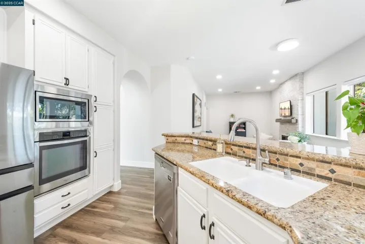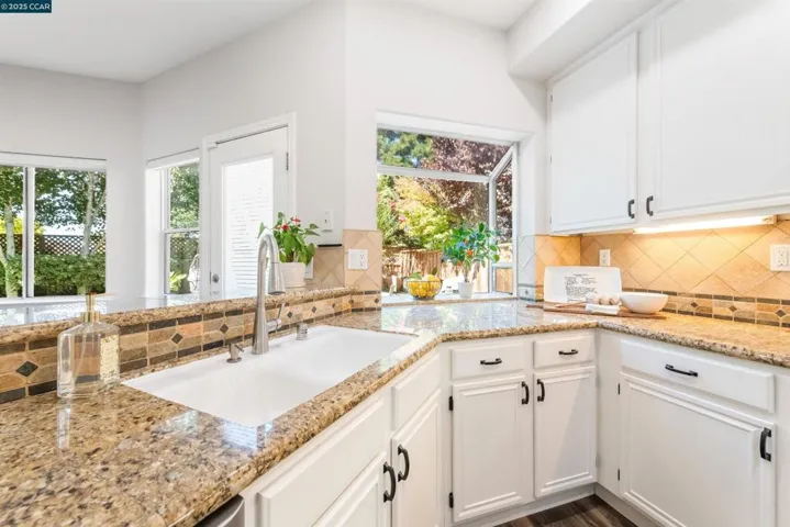 come see this East facing gem! Step into this beautifully updated 4-bedroom, 3-bathroom home, ideally situated near top-rated schools. With a full bedroom and bathroom conveniently located on the main level, this home offers flexibility. The stucco exterior and classic tile roof set the tone for timeless curb appeal. Inside, you’ll find fresh designer paint throughout, newer luxury vinyl tile flooring, and bright new LED lighting that enhance the home’s modern feel. The spacious white kitchen features tile granite countertops, a breakfast bar, tile back splash and garden window for tons of light and flows seamlessly to the breakfast nook and family room—perfect for entertaining. Enjoy cozy evenings by the newly updated fireplace or relax in the private backyard oasis. The home also boasts updated bathrooms, large garage with epoxy floors and lots of storage!