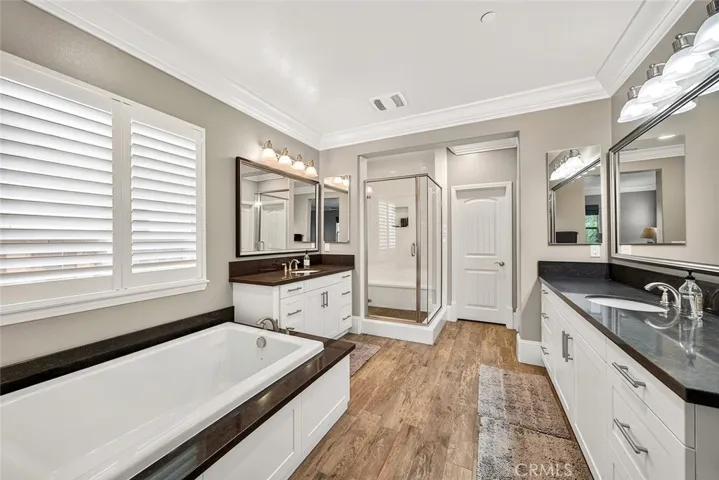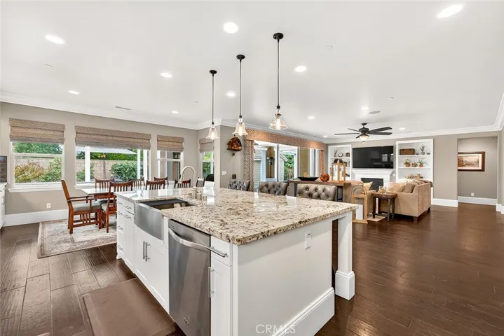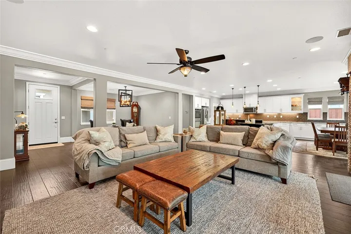 **Single Story Beauty with extensive upgrades in the highly desired community of Heritage Lakes** Open the door to the courtyard and step into this stunning 4 bedroom, 2.5 bathroom, single-story home where style meets functionality. The open great room floor plan is enhanced by the hardwood floors, wood-look tile in the bathrooms, laundry, and the custom crown molding and baseboards throughout. The neutral colors enhance the calming flow. Spread out over 2,785 square feet. This home exudes warmth and sophistication. The kitchen is a chef’s dream with a large island, double ovens, beautiful backsplash, and high end cabinetry. Enjoy cozy evenings in the living area with custom built-ins flanking the fireplace. You will appreciate the seamless indoor-outdoor living provided by the California room slider doors. The outdoor space is an entertainer’s dream. Listen to the water feature, sit around the firepit, truly relax in a low maintenance yard that’s there for you. Thoughtful upgrades inside and out include custom light fixtures, fans, and heaters built into the patio ceiling for year round comfort. Car enthusiasts and organizers alike will appreciate the 3 car tandem garage with New Age Pro Series cabinets and a durable epoxy floor finish. This home is truly turnkey with every detail considered from the front to the back. The unbelievable amenities in Heritage Lakes include two pool areas, multiple parks, walking trails, a lake, and a great community center. With all this home has to offer, don’t miss the opportunity to make this gem yours!