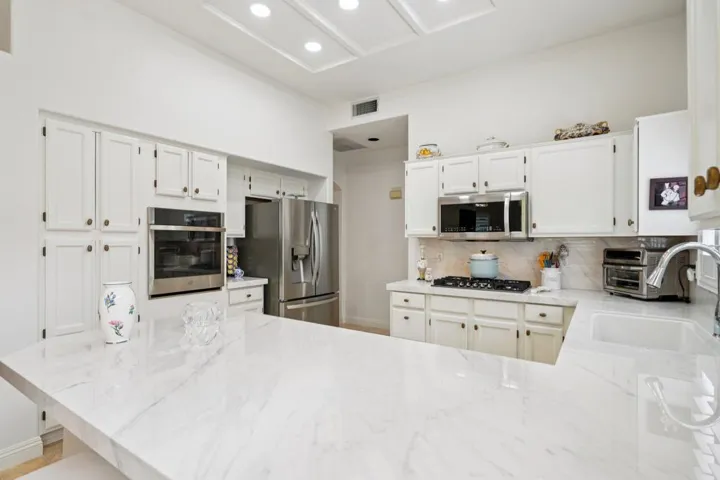 Beautifully refreshed and move-in ready, this elegant residence offers timeless charm with modern upgrades throughout. Located in the heart of Sun City, the home features fresh interior paint and newly installed plantation shutters that enhance both style and privacy.Inside, travertine marble floors add warmth and sophistication, while the updated kitchen boasts sleek porcelain countertops and a brand-new gas cooktop–replacing the previous electric setup for improved performance. The open floor plan flows seamlessly, ideal for both everyday living and entertaining.Step outside to enjoy a professionally landscaped yard with a stone garden walkway and an electric canvas patio cover for effortless shade and comfort. Every detail has been thoughtfully curated to elevate the living experience.Don’t miss this opportunity to own a beautifully updated home in one of the desert’s most desirable 55+ communities.