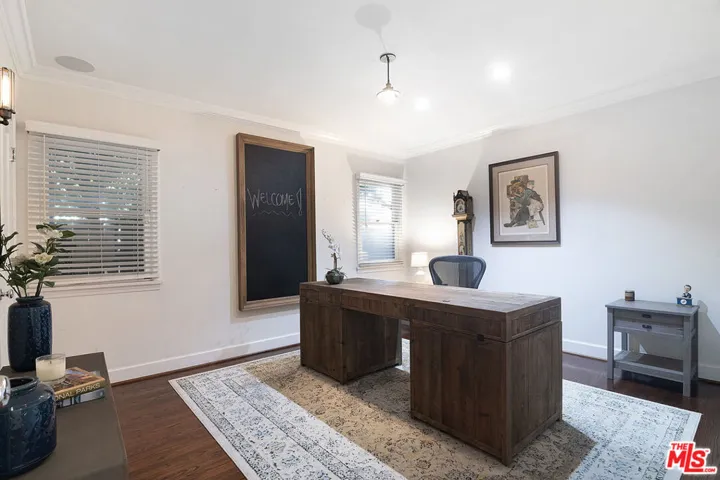 Offers Due 11/7 @ 12 Noon. This is the perfect West Hollywood Bungalow, completely and stylishly remodeled and ready to move right in. The main house features gleaming wood floors and boasts 2 bedrooms and 2 baths with a sun drenched living room w/cozy fireplace and large beautiful bay windows overlooking a lushly landscaped front yard that is perfectly framed with the “white picket fence” you’ve always wanted. The formal dining room sits adjacent to the chef’s kitchen with center island, stainless steel appliances and glass front display cabinets. There is also a huge separate laundry room with tons of storage & pantry closets. The primary suite has side by side closets and a spa-like bath with soaking tub and separate shower. The very private rear yard has mature landscaping and low maintenance hardscape pavers including a detached/permitted bonus room with a half bath. Amazing location close to all the best dining, shopping and entertainment in L.A.