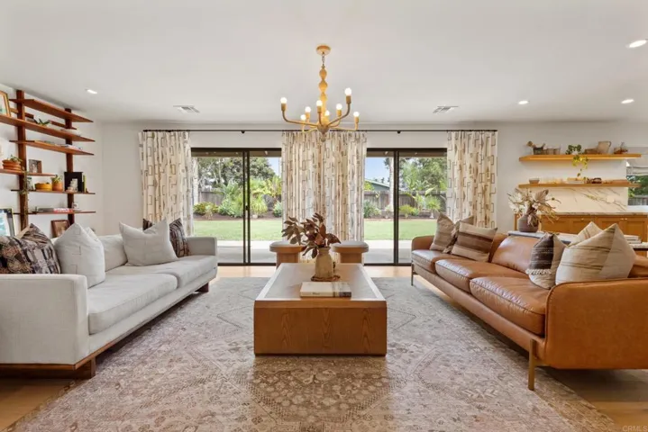 No expense was spared in this beautiful Olivenhain rancher with a massive yard. This home is designer from top to bottom & has been meticulously curated so you can skip the years of costly & messy renovations. This dream home is full of warmth and character & includes nearly 3,000 sq. ft. of high-end luxury finishes, typically found only in Rancho Santa Fe estates, making this home truly one of a kind. The kitchen is a true designer masterpiece & was crafted for both beauty and performance. Durable soapstone countertops handle everyday living with ease, while stunning Italian marble makes a bold statement of luxury. Top-of-the-line Wolf and Sub-Zero appliances, a discreet appliance garage, and a whole-house water filtration system elevate both style and functionality. The open layout flows effortlessly across white oak floors, smooth plaster walls, designer lighting, and custom window treatments, creating a warm yet sophisticated atmosphere. Bathrooms feature authentic, hand-crafted Zellige tile (never mass-produced imitations) bringing artisan detail to every space. With a custom bar, mudroom, laundry room, and built-ins throughout, every corner of this home has been meticulously designed for beauty, practicality, and modern living. Each bedroom is a blend of style and function with custom closets, but the primary suite is in a league of its own. A private sanctuary designed for ultimate indulgence. Step outside to your very own wellness courtyard, where a spa, dry sauna, cold plunge, and tranquil stone fountain create a five-star resort experience right at home. Step outside and the HUGE, flat backyard takes center stage. While the massive grassy lawn is perfect for sports, play, or gatherings. The property also features ample space for a pool or ADU & has unlimited potential for your dream outdoor oasis. All of this is just minutes from the beach, top-rated schools, and scenic trails. This is not just a home, it’s a lifestyle. Opportunities like this don’t come around often; to recreate it would take months of planning, design, and construction.