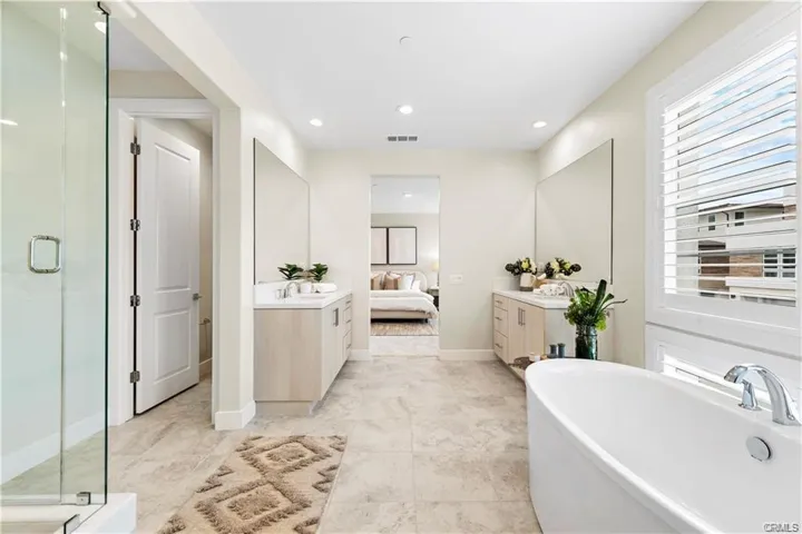 This corner lot home is a gem! Solar panels are included which save lots of electricity. Located adjacent to a community park, The Redwoods at The Meadows Community offers the luxurious Briar floor plan with soaring high ceilings in the entry foyer, a first-floor bedroom and bath, and three additional bedrooms on the second floor, each with its own bathroom and a loft area. The elegant primary bedroom suite on the second floor features an expansive walk-in closet and a deluxe primary bath with dual vanities, a large soaking tub, a luxe shower, and a private water closet. Secondary bedrooms come with ample closets and en-suite baths.