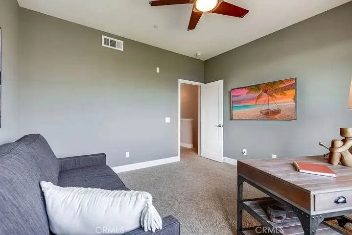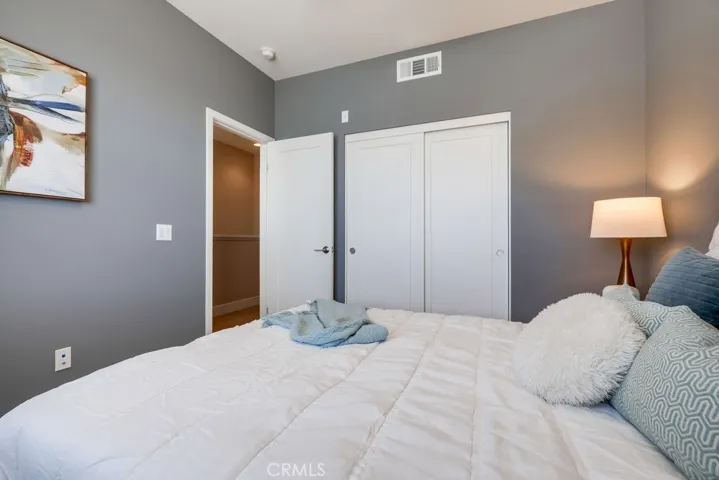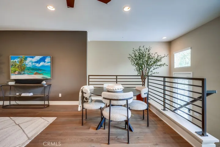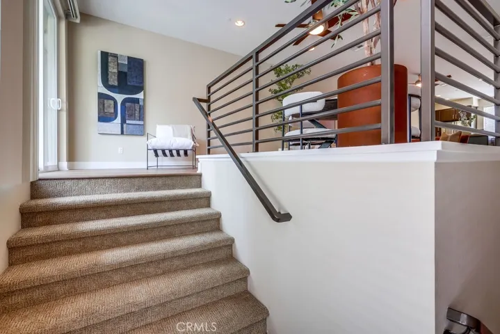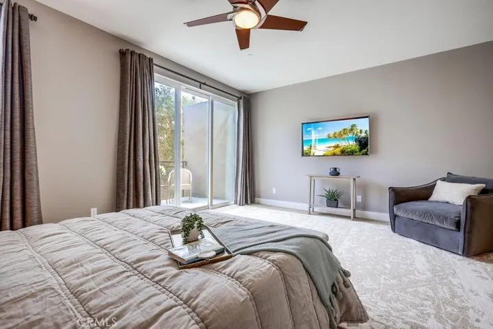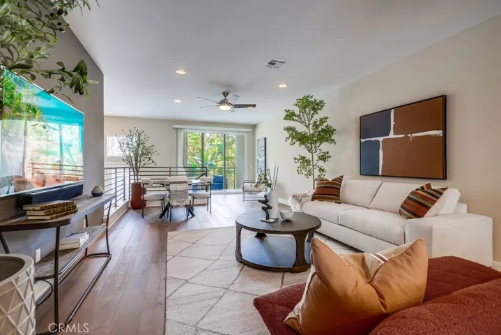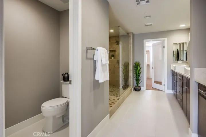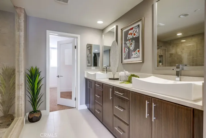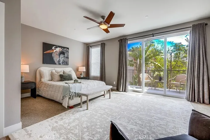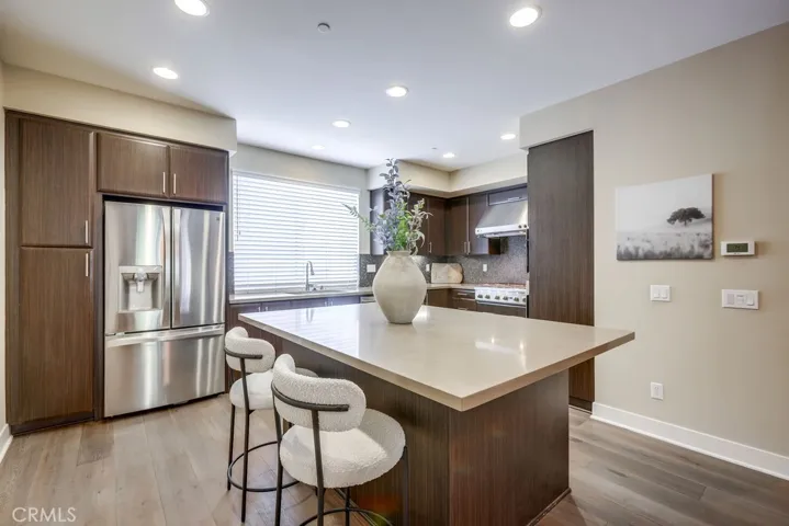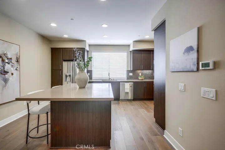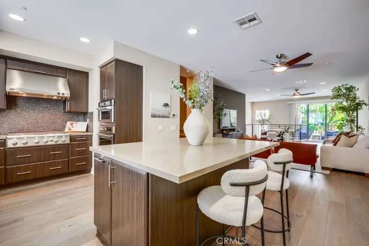 Enjoy two outdoor balconies that provide views of the park and the Irvine Financial District. The highly sought-after open floorplan includes a chef-inspired kitchen, complete with a large center island, quartz countertops, modern cabinetry and professional stainless steel appliances, making it perfect for culinary enthusiasts.