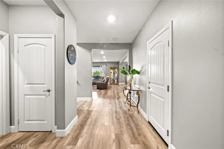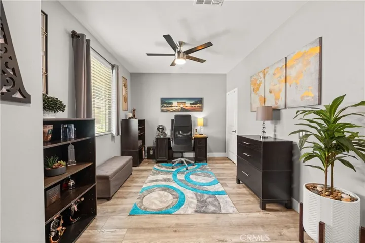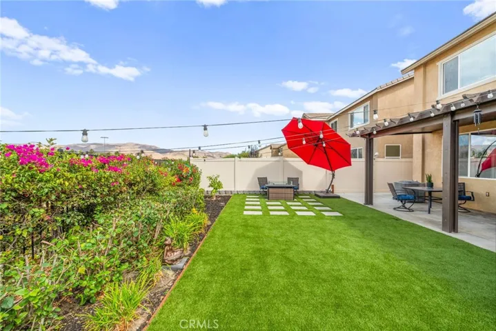 This beautifully upgraded 4-bedroom, 3-bath home with a flexible office/5th bedroom option is the perfect blend of style, space, and functionality. Built in 2018, this home is truly move-in ready and offers everything today’s buyer is looking for — and more. Step inside to discover luxury vinyl flooring throughout the main living areas, a spacious open-concept layout, and a chef’s dream kitchen featuring a massive center island, granite countertops, stainless steel appliances, and a walk-in pantry. The expansive kitchen seamlessly flows into the dining and living areas — ideal for entertaining and family gatherings. Upstairs, you’ll find four generously sized bedrooms and a versatile loft space perfect for a retreat, kids’ playroom, home office, or entertainment area. The downstairs office includes a closet, making it easy to convert into a 5th bedroom if needed. Step outside to your private backyard oasis complete with low-maintenance turf, a covered patio, and a designated garden area — the perfect space for relaxing, entertaining, or enjoying Southern California’s year-round sunshine. Other highlights include: Solar panels for energy efficiency, Attached 2-car garage, Modern lighting fixtures and thoughtful upgrades throughout. Low HOA only $85 monthly.