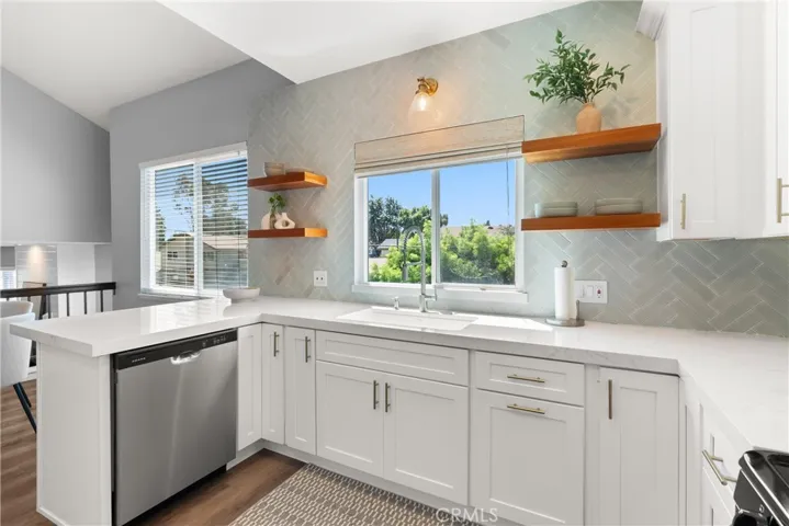 This end-unit in Bay Laurel offers 1,430 sqft. of well-designed living space with a dual-primary layout, 2.5 bathrooms, and a versatile loft. The home has been thoughtfully remodeled with new flooring, fresh paint, updated finishes, and a redesigned fireplace, all enhanced by abundant natural light throughout. The main level features an open living and dining area, a modern kitchen, a powder bath, and a primary suite with full bathroom. Upstairs, the loft flexes easily as a home office, media lounge, or potential third bedroom, while the second primary suite boasts a private balcony and full bath. Outside, the wraparound patio has been upgraded with low-maintenance turf in place of concrete—perfect for grilling, entertaining, or pets. The attached two-car garage offers direct access into both the home and outdoor space. Additional highlights include central A/C and a prime Costa Mesa location near beaches, the Back Bay, golf, shopping, and dining—making this home the complete package for today’s lifestyle.