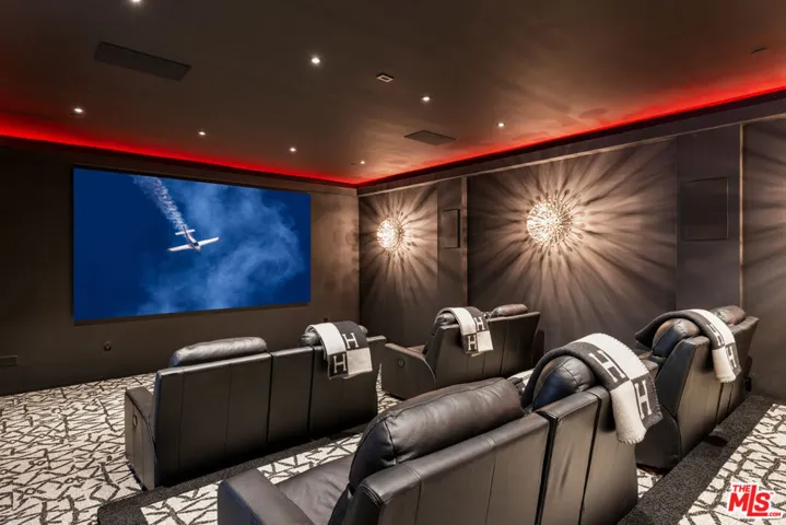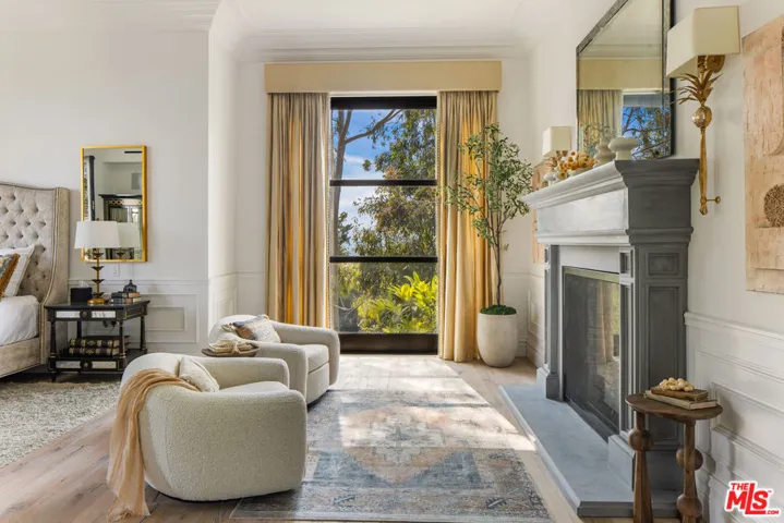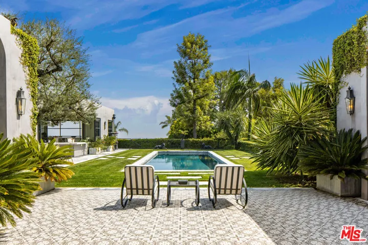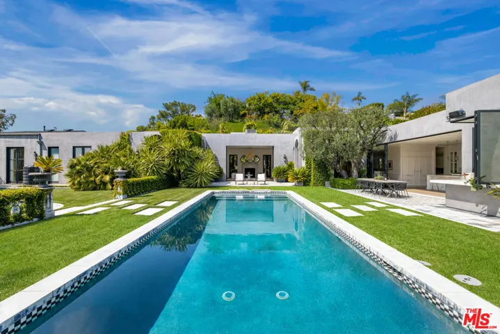 Redefining Hollywood glamour, 1457 Blue Jay Way is perfectly poised on one of the largest flat parcels along the legendary Billionaire’s Row in the Bird Streets. Originally designed by celebrated architect Bob Ray Offenhauser and exquisitely reimagined by the award-winning Garratt Group, this Hollywood Regency estate blends timeless symmetry with state-of-the-art luxury. Inside, soaring 14-foot ceilings and expansive NanaWall glass doors capture sweeping city-to-ocean vistas and create seamless indoor/outdoor flow. The chef’s kitchen dazzles with Calacatta gold marble and dual appliances, opening to generous living and dining spaces ideal for grand entertaining or intimate gatherings. Five bedrooms include a versatile lower-level suite with a private entrance perfect for a nanny, guest quarters, or sophisticated home office. The lower level also hosts a professional 14-seat screening room, ~500-bottle wine cellar, gym/yoga studio, and a spa retreat featuring a steam room, dry sauna, and jetted hot tub. Crowning the residence is an extraordinary rooftop garden rarely found in the Bird Streets: over 80 fruit trees, two vegetable gardens, a passionfruit arbor, strawberry patch, and herb beds underplanted with rosemary, all supported by a smart irrigation system. Outdoor entertaining spaces are private from every direction, offering tranquil moments or glamorous soires beneath the city lights.Located just minutes from the Sunset Strip and Beverly Hills, enjoy proximity to world-class dining, nightlife, and members-only venues such as the Bird Streets Club and Soho House. A rare architectural jewel, 1457 Blue Jay Way delivers the ultimate combination of scale, location, and sophisticated indoor-outdoor living – an unparalleled retreat in the heart of Los Angeles.