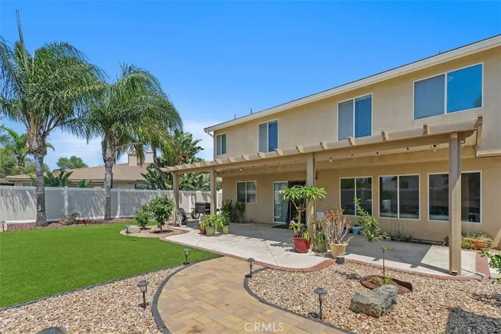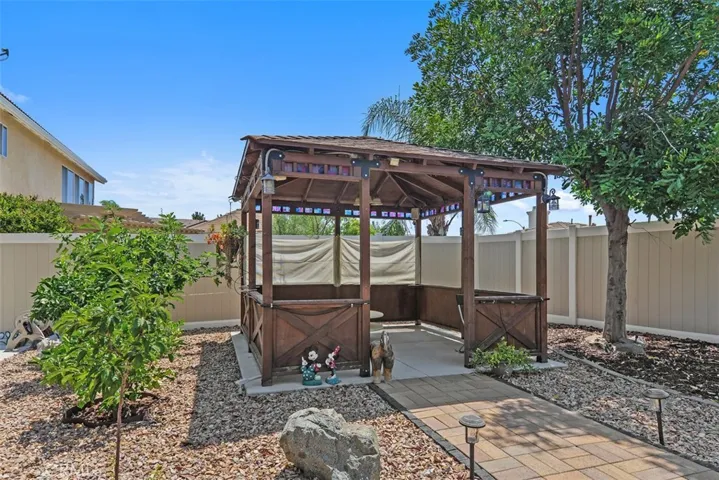 RV parking/Main floor bedroom/ large lot/Potential ADU project/No Carpet/No HOA. Welcome to this impressive property located in the highly desirable community of Murrieta. Located conveniently close to Award-winning schools, shopping, freeway access. The curb appeal is undeniable with wide driveway and RV parking with RV charger and own sewer. The parking space includes both outside and inside of the gate . The property features main floor bedroom and one full bath. Laundry room locates downstairs. Separate family and living room, gourmet kitchen opens up to the family room. White Cabinetry, Remodeled the bathrooms with upgrade electric features. Master bedroom suite and remaining well-sized 3 bedrooms upstairs. When stepping out to the fully covered-patio backyard, you will fall in love with this beautiful and low-maintenance garden instantly. Complete with well-maintained artificial grass, Fire pit and custom-made gazebo, which includes lights features and radio player. You will be exciting to harvest fruits in seasons, Cherry, Lime, Lemon and Fig. Enjoy this exceptional and stunning house !